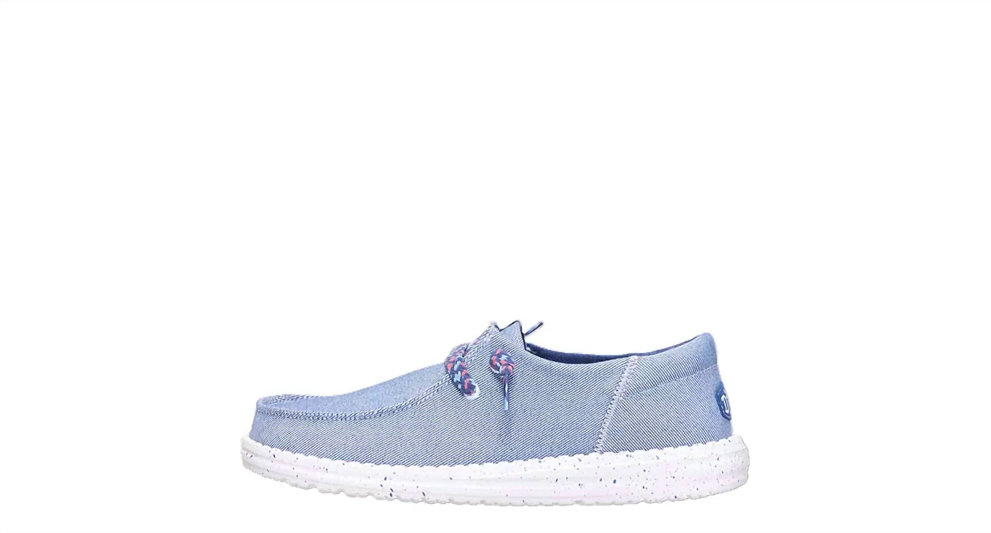 Get your daily steps in with these adorable sneakers. Step into playful comfort with the HEY DUDE Wendy Funk Friendship Slip-On Sneaker in Lace Navy, designed for women who adore minimalist trends. Featuring a denim and textile upper, these sneakers boast colorful no-tie laces for a unique flair and a round toe silhouette for added comfort. The lightweight, durable outsole is complemented by a removable cushioned insole, perfect for an afternoon spring outing or a casual Easter dinner party. Complete with a flat heel measuring underneath 1 inch, these sneakers ensure a chic yet relaxed look.