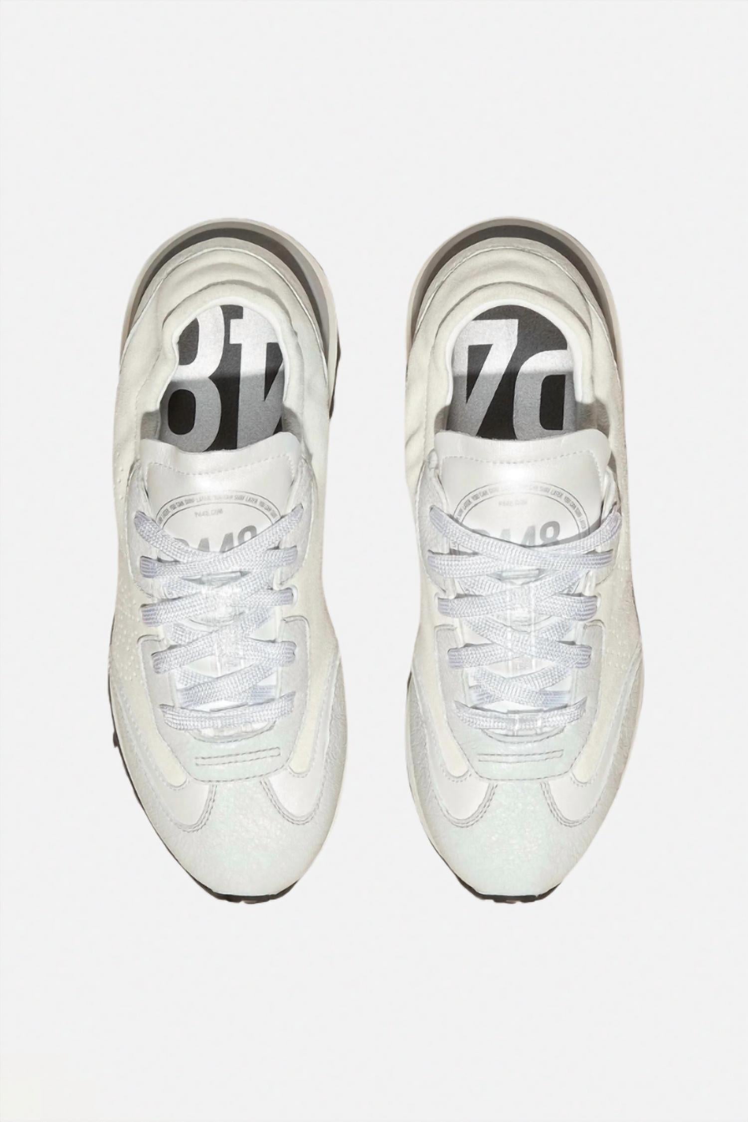 Cute, functional, and comfortable. These sneakers check all the boxes. Introducing the Women's Audry Sneaker by P448, crafted for those who appreciate a minimalist yet impactful style. Made in Italy, this sneaker features a sophisticated blend of white suede, pearled leather, and crackled leather, accentuated by a perforated P448 logo. Enjoy the comfort of a terry cloth lining and memory foam insole, set upon a two-toned foam sole with a black rubber tread for added grip. Complete with white polyester laces and an extra pair of grey cotton laces, this sneaker effortlessly pairs with your favorite spring outfits.