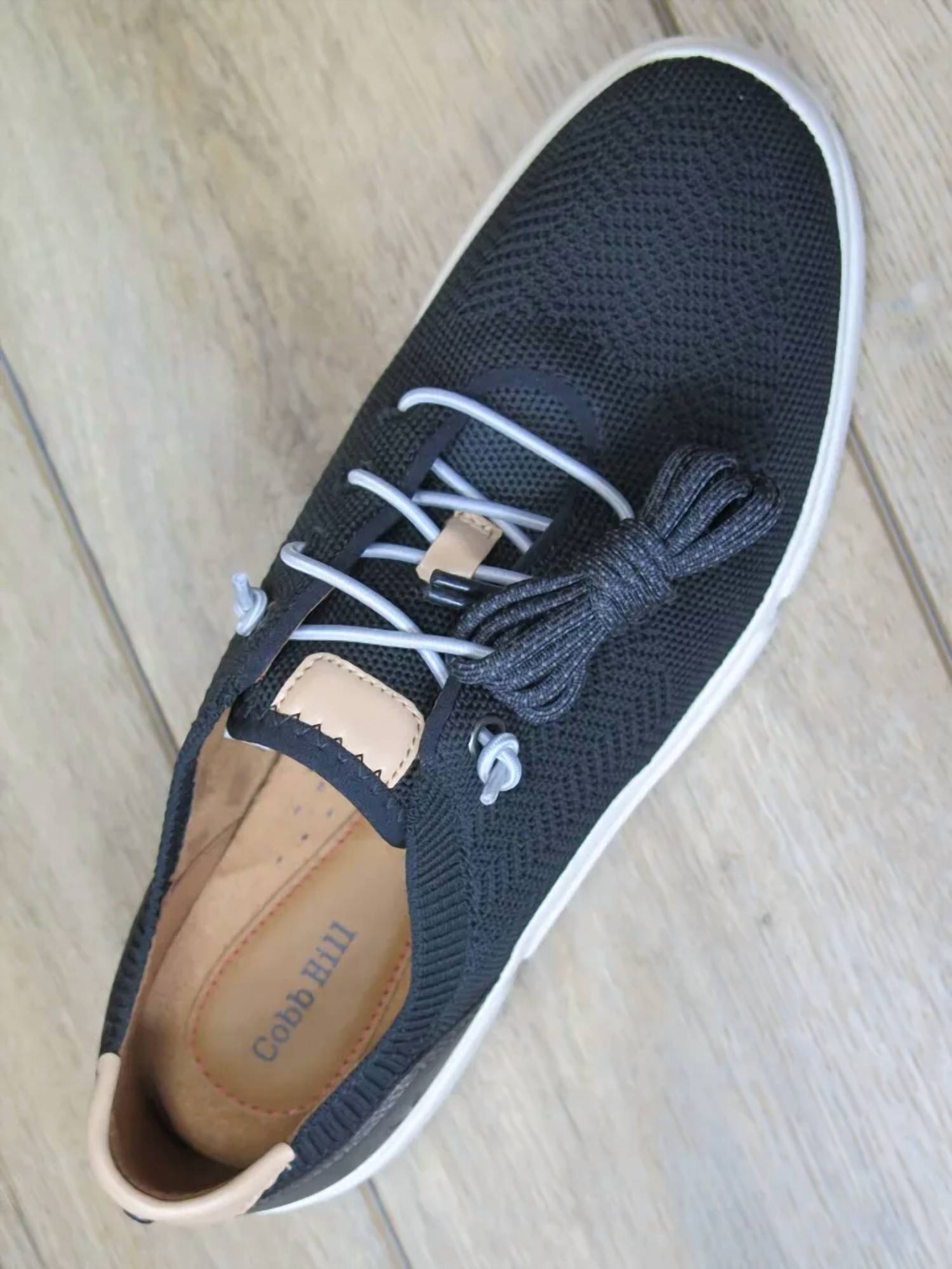 Cute, functional, and comfortable. These sneakers check all the boxes. Step up your footwear game with the Women Juna Bungee Sneaker by ROCKPORT, featuring a sleek black leather design perfect for any casual outing. Crafted for women, these sneakers boast a round toe shape and a flat heel, combining comfort with style for everyday wear. Material: Leather. Suitable for adults.