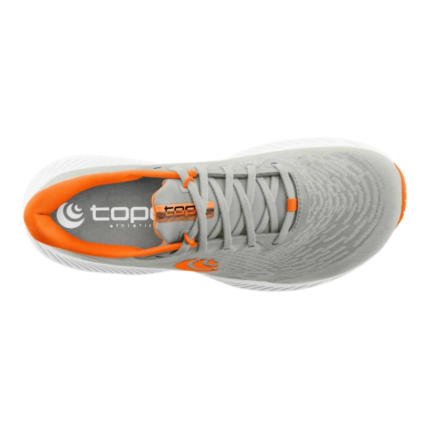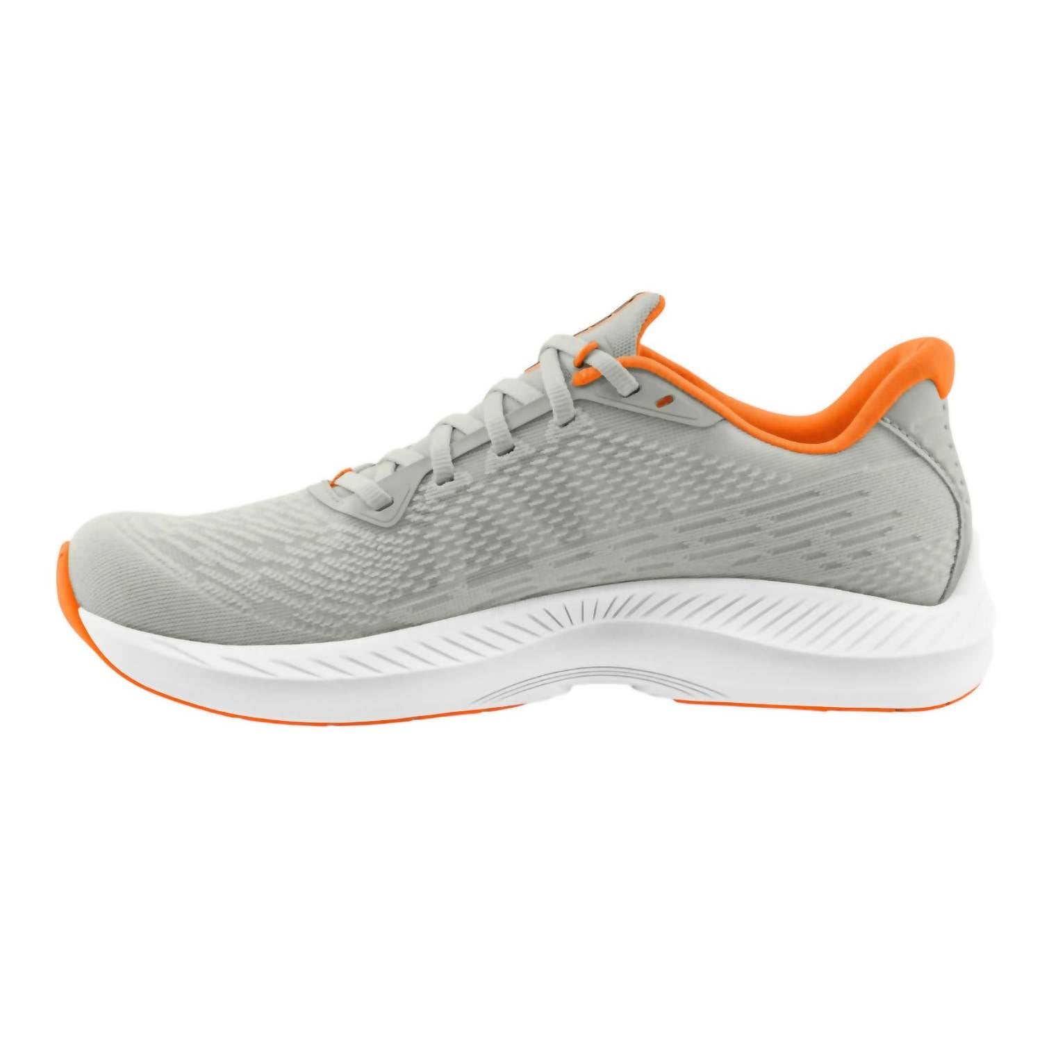 Step up your workout game with the Topo Athletic Men's Fli Lyte 5 Sneakers in Grey Orange. Designed for fitness enthusiasts, these sneakers feature the innovative ZipFoam™ midsole for a perfect balance of cushioning and bounce. Enhanced heel and forefoot rocker design ensure a smoother ride, complemented by a durable and traction-focused rubber outsole. Unleash your potential this spring with these athleisure must-haves.