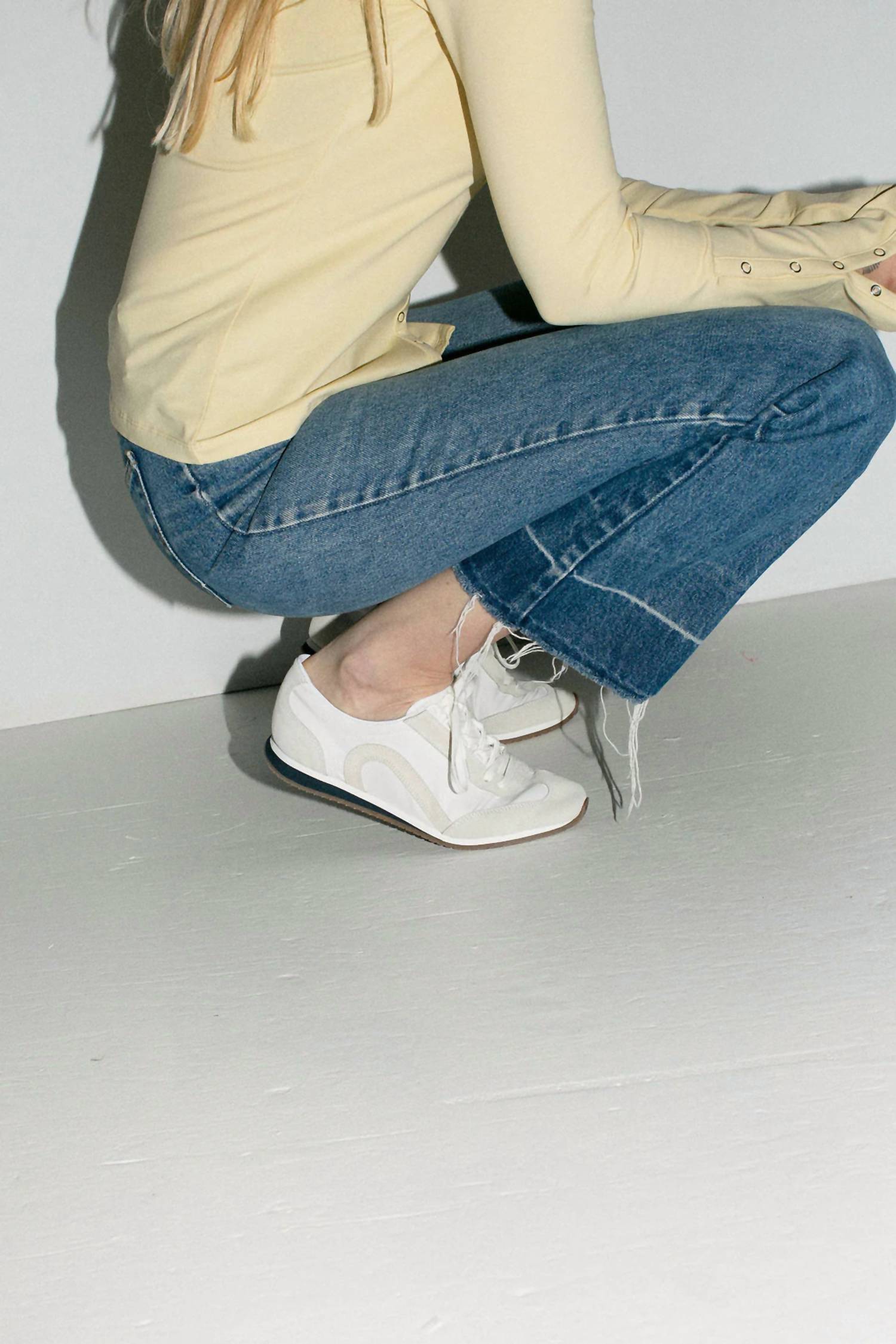 When fashion and function come together seamlessly. Step into understated elegance with the Women's Aries Shoe by Rodebjer, a minimalist sneaker perfect for a spring dinner party. Featuring a round toe design, this sneaker combines a 100% nylon upper with a durable rubber sole for lightness and comfort. In timeless white, its flat heel ensures effortless wear. Designed for women, this shoe pairs naturally with any chic spring ensemble.