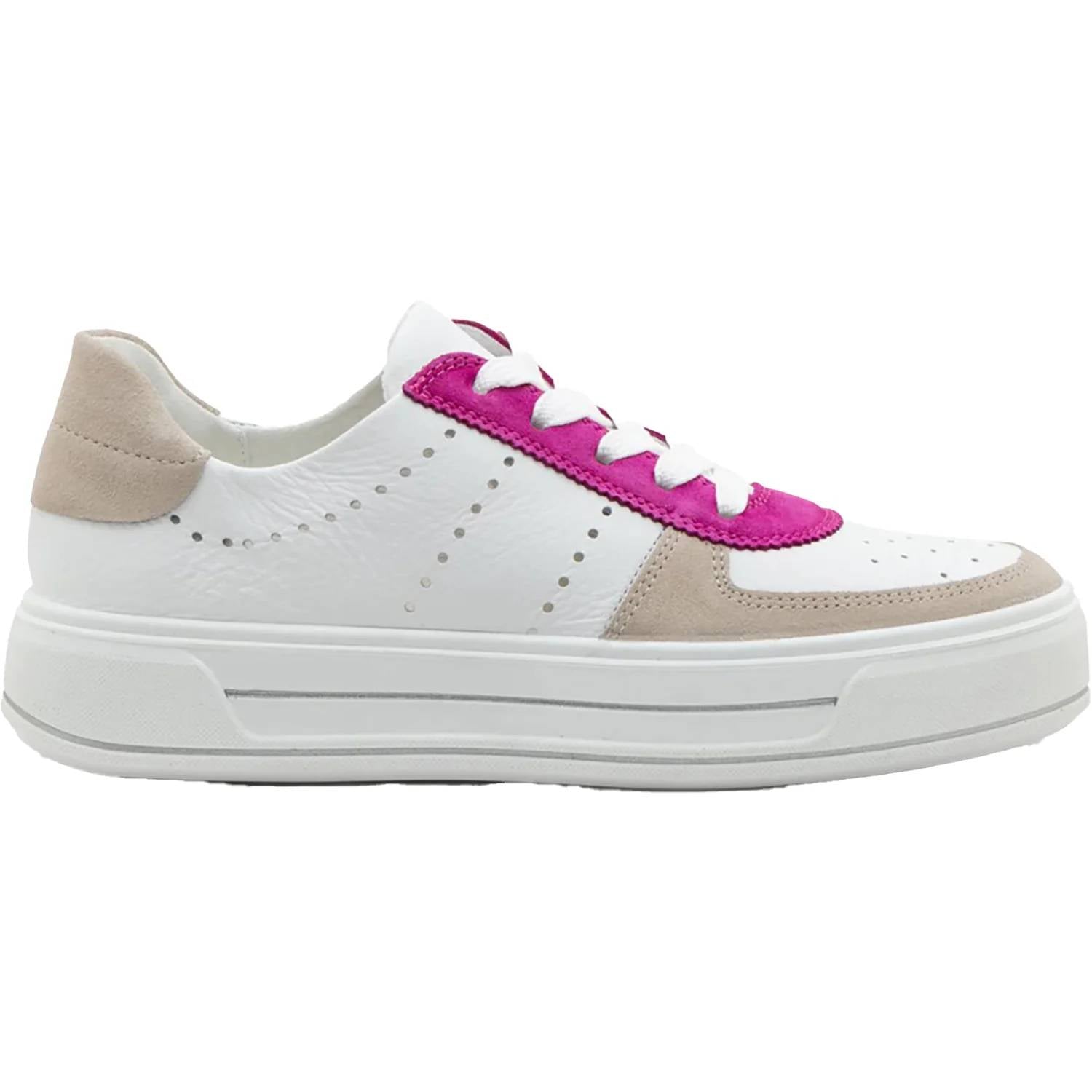 Experience unparalleled comfort. Expertly designed for style and support. Featuring soft bamboo terrycloth lining. Lace-up sneakers ensure a cozy sock-free wear. Benefit from the removable footbed with Ara's High Soft arch support.