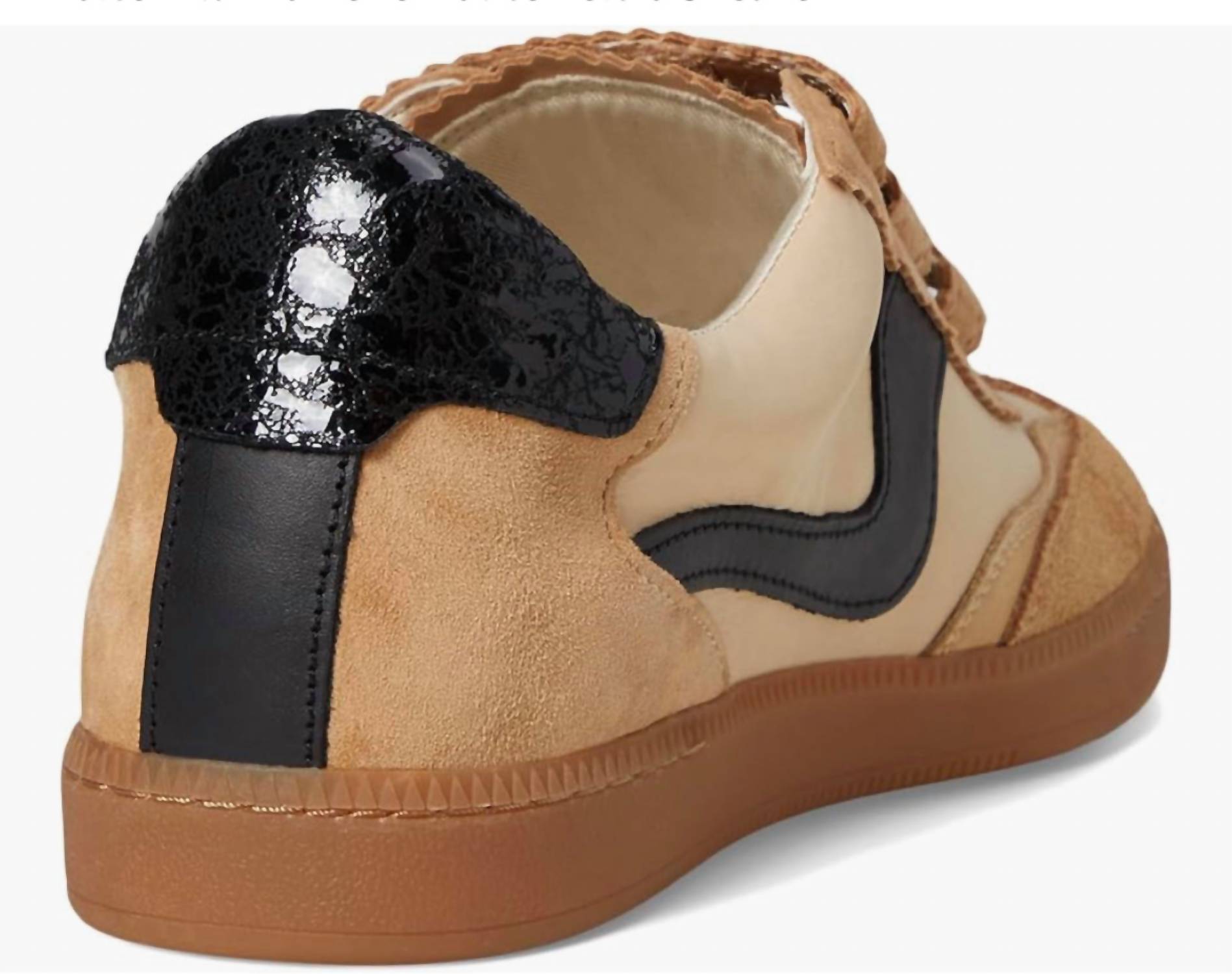 Cute, functional, and comfortable. These sneakers check all the boxes. Step into effortless style with the Women's Notice Sneaker by Dolce Vita, a must-have for every wardrobe. Designed with a suede and textile upper, this sneaker features Velcro straps for easy wear, making it perfect for an active day. Enjoy the comfort of a recycled synthetic outsole and lining, along with a synthetic sock, ensuring durability and eco-friendly fashion. With a removable insole that measures 1" at the back and 0.3" at the front, this imported sneaker is as functional as it is fashionable. Ideal for minimalist spring outfits, its Velcro Tan Multi color makes it a versatile choice for dinner parties.