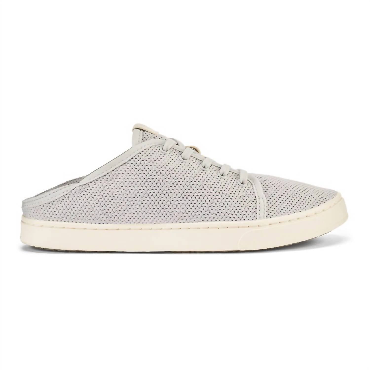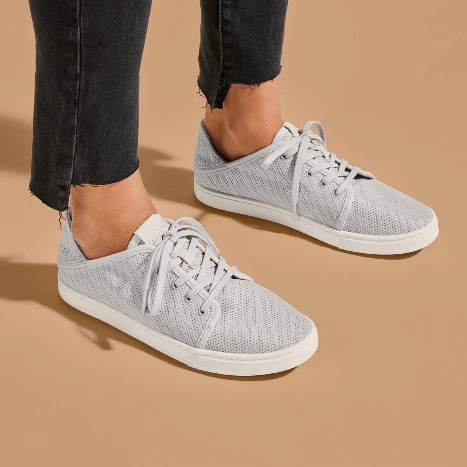 Cute, functional, and comfortable. These sneakers check all the boxes. Introducing the Women's Pehuea Li Sneaker by OluKai in a stylish Mist Grey. With its lightweight, breathable all-mesh upper, this round-toe sneaker is perfect for summer travel. It features a versatile slip-on design with a signature Drop-In Heel® for effortless transition between a slide and a full shoe. Engineered for all-day comfort, this flat-heeled sneaker supports every adventure you embark on.
