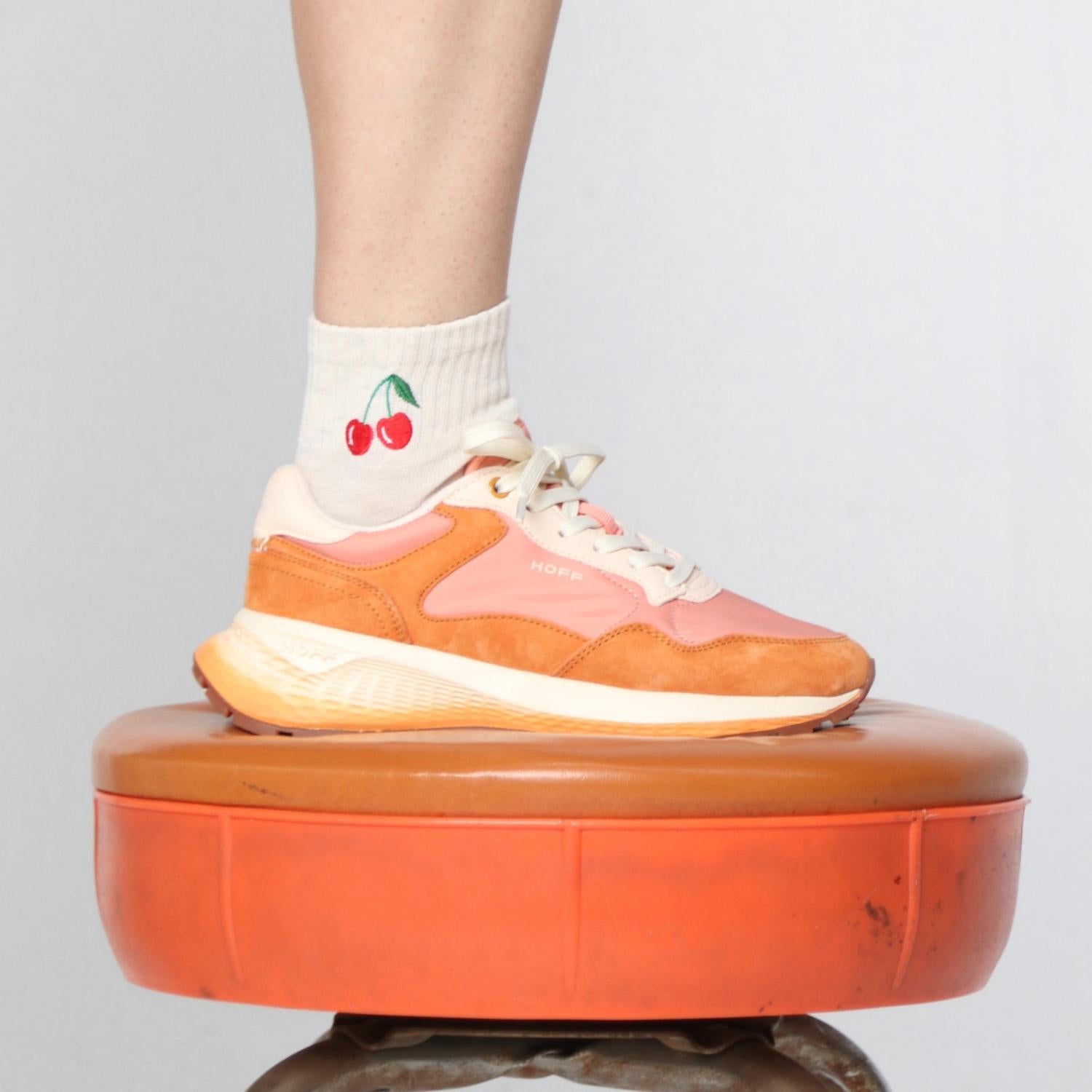 Cute, functional, and comfortable. These sneakers check all the boxes. Meet the HOFF Women's City MKII Paris II Sneaker, a stylish blend of terracotta suede and blush pink fabric elevating any spring ensemble. This women's sneaker, crafted with a flat heel and round toe, features a tonal lace-up closure for a secure fit. The chunky sculpted sole adds a modern silhouette, while the textured outsole ensures grip and stability. Perfect for vacation outings, these sneakers effortlessly complement denim and athleisure styles, adding a fresh, feminine edge.