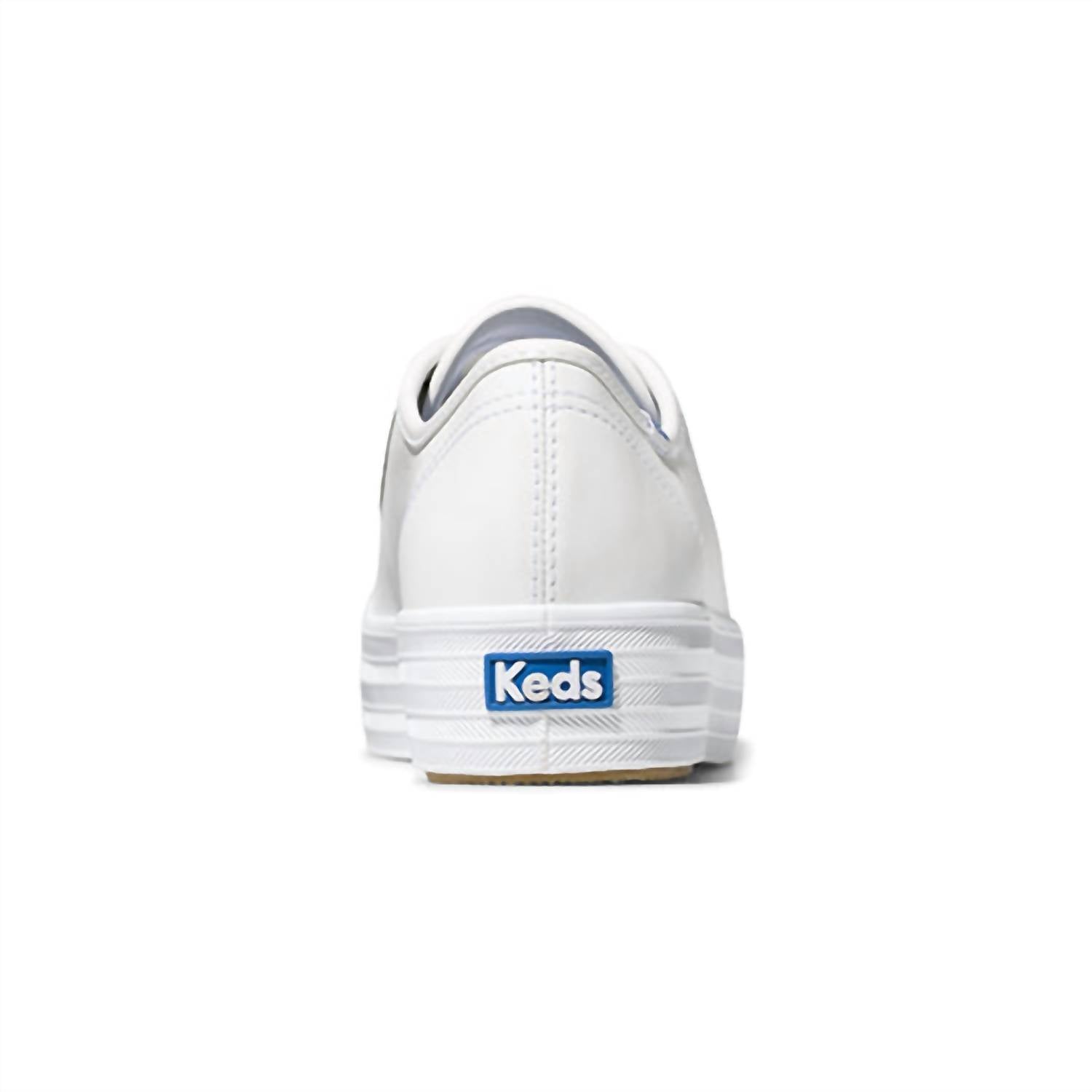 When fashion and function come together seamlessly. Step into style with the Women Triple Kick Leather Sneakers by Keds, an ideal blend of comfort and elegance. These white sneakers feature a chic leather construction and a flattering round toe. Designed for women, these shoes offer a classic flat heel perfect for everyday wear. Elevate your casual look with this versatile footwear choice.
