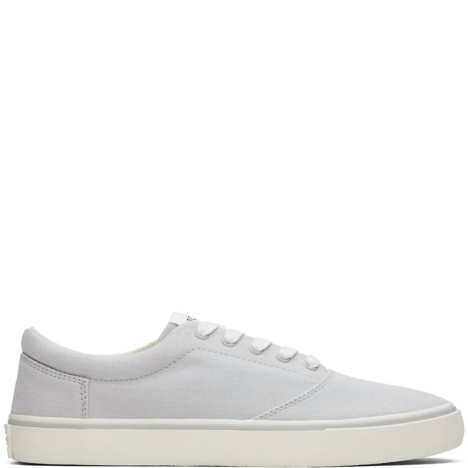 Introducing the Men's Fenix Lace Up Shoes by TOMS, a stylishly durable option in sleek grey. This streetwear-inspired sneaker features textile uppers with a vulcanized, custom rubber sole, enhanced by a 30mm textured foxing and toe bumper for added flair. With a padded collar and OrthoLite Eco LT Hybrid insoles, these shoes ensure all-day comfort, featuring removable insoles for convenience. Ideal for summer vacations, these sneakers are crafted with eco-conscious materials, perfect for the modern, environmentally-aware man.