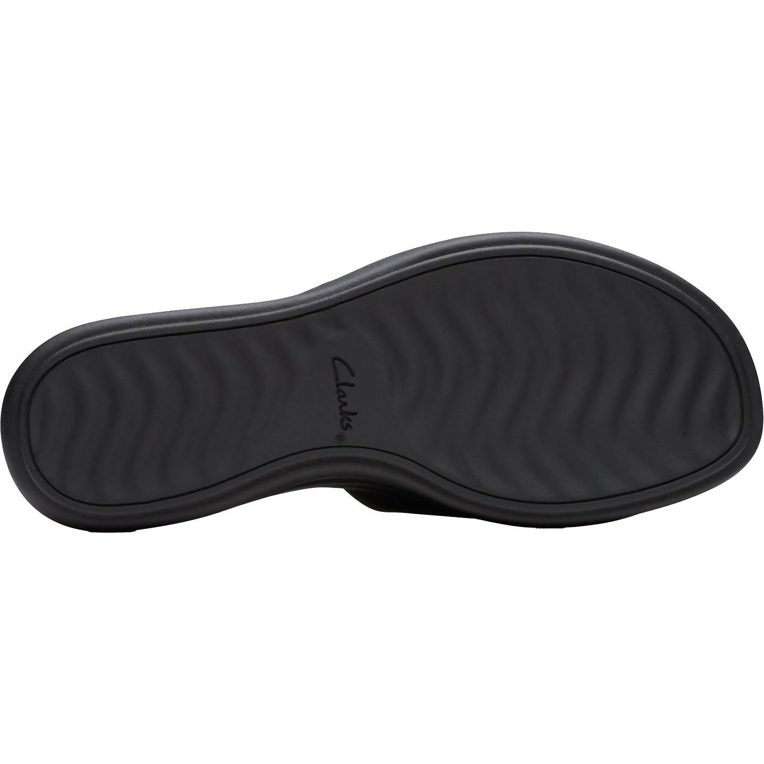 When fashion and function come together seamlessly. Step into style with the Women's Clarks Drift Twist Sandals in sleek black, perfect for your summer outings. Crafted from a soft synthetic upper, these sandals feature an open toe and a low wedge heel for a chic minimalist look. Designed with a super-soft EVA footbed and a lightweight EVA midsole, they provide day-long comfort, while the durable TR outsole ensures grip and stability. Ideal for casual occasions or a day at church, these sandals are a versatile addition to any wardrobe. Heel height: 1.78".