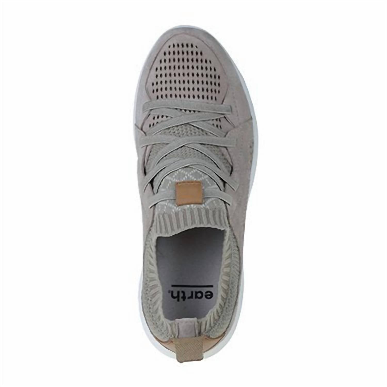 Cute, functional, and comfortable. These sneakers check all the boxes. Elevate your summer style with the Women's Desire Flow Sneaker by EARTH, designed for ultimate comfort and trend-forward appeal. With a premium suede and knit upper, these sneakers offer blissful breathability featuring airy perforations. The exclusive dual-density footbed, reinforced arch support, and Earth PowerPath design ensure all-day comfort, supported by a low 1.44" heel. Perfect for workwear occasions, these sneakers come with a removable insole and a round toe for added versatility.