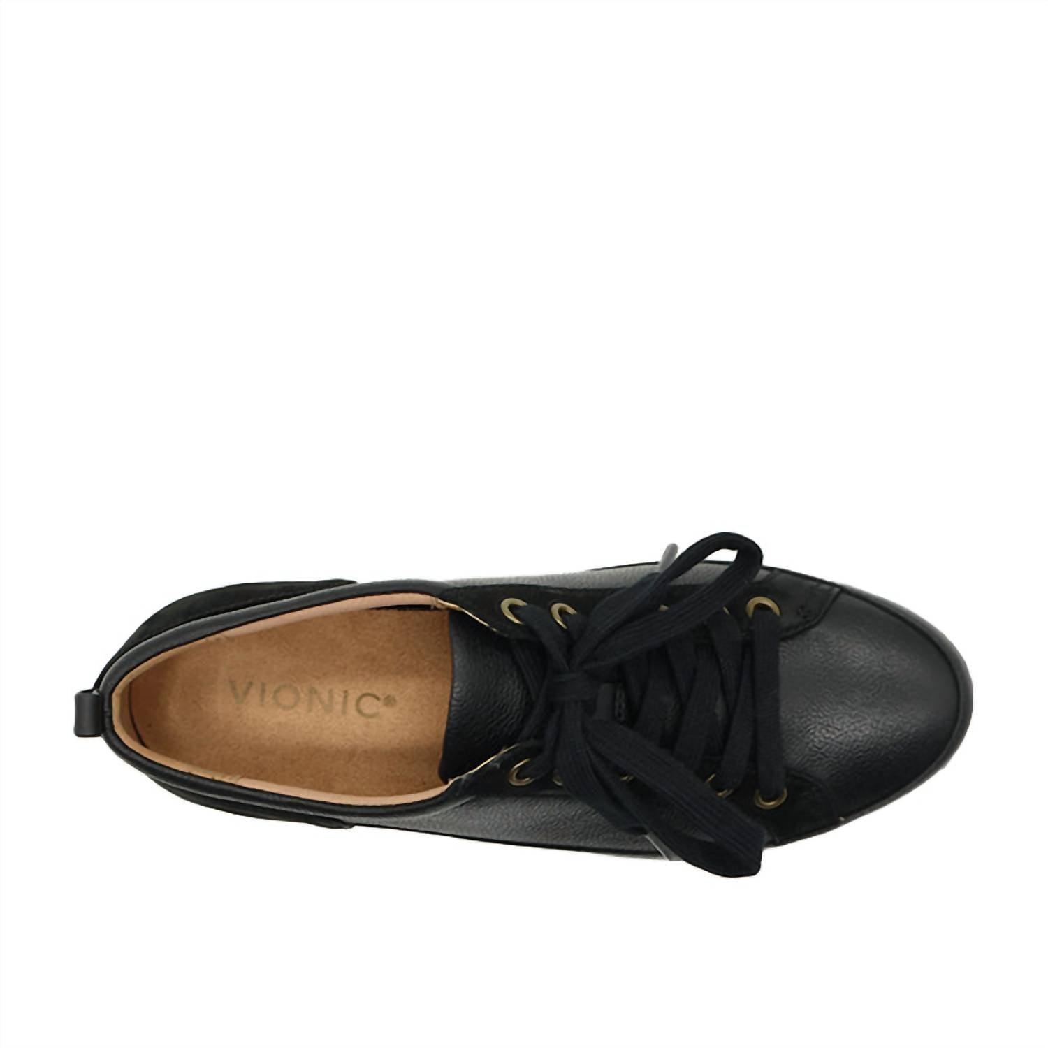 When fashion and function come together seamlessly. Introducing the Women's Winny Shoes by VIONIC, crafted for stylish travel and spring outings. These black sneakers feature a leather composition with a classic round toe and flat heel, ensuring both comfort and versatility. Designed specifically for adult women, these shoes are a chic addition to any wardrobe.