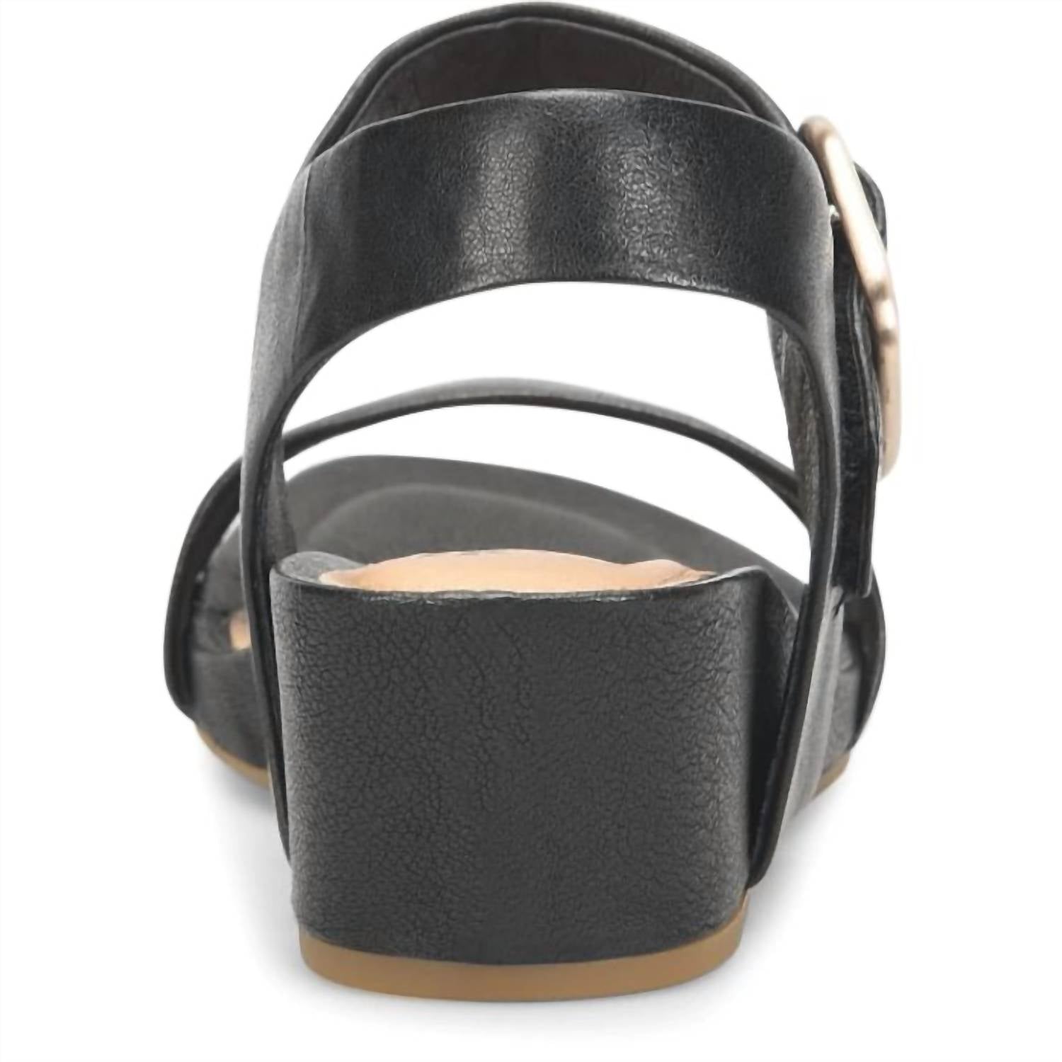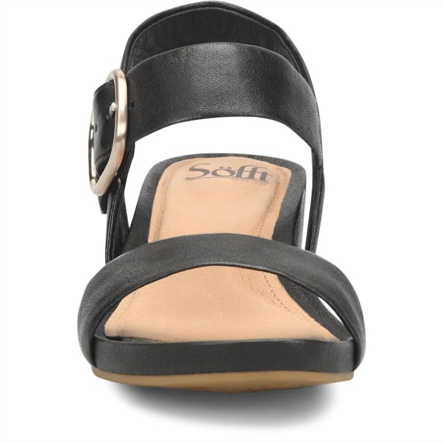 Elevate your footwear game with these adorable wedges. Introducing the Women's Vaya Wedge Sandals by Sofft, crafted in luxurious leather and available in versatile black. These sandals feature an open toe design and a low wedge heel measuring 2 inches for the ideal blend of height and comfort. The adjustable buckle with a hidden hook-and-loop strap ensures a secure fit, while the leather-lined footbed and elevated cushioning provide visible comfort. Enjoy added stability with the flexible, slip-resistant TPR outsole.