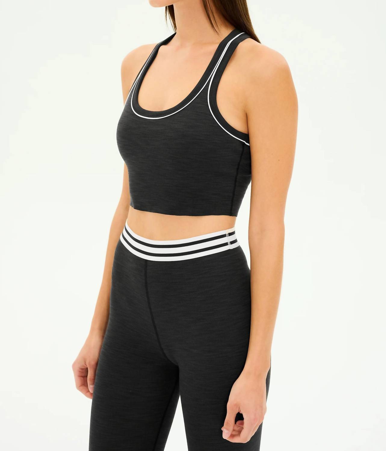 So comfortable you can sleep in it, lounge in it, or work out in it. Experience maximum comfort and style with the Bailey Active Rib Bralette by SPLITS59, expertly crafted for your intense workouts. This women's sports bra comes in a chic black color with a textured pattern, ideal for hot yoga, barre, and Pilates. Its sleek, supportive active rib fabric ensures a flattering fit, perfectly blending functionality with the athleisure trend for the spring season. Pair it effortlessly with the matching legging and half-zip pullover for a coordinated fitness look.