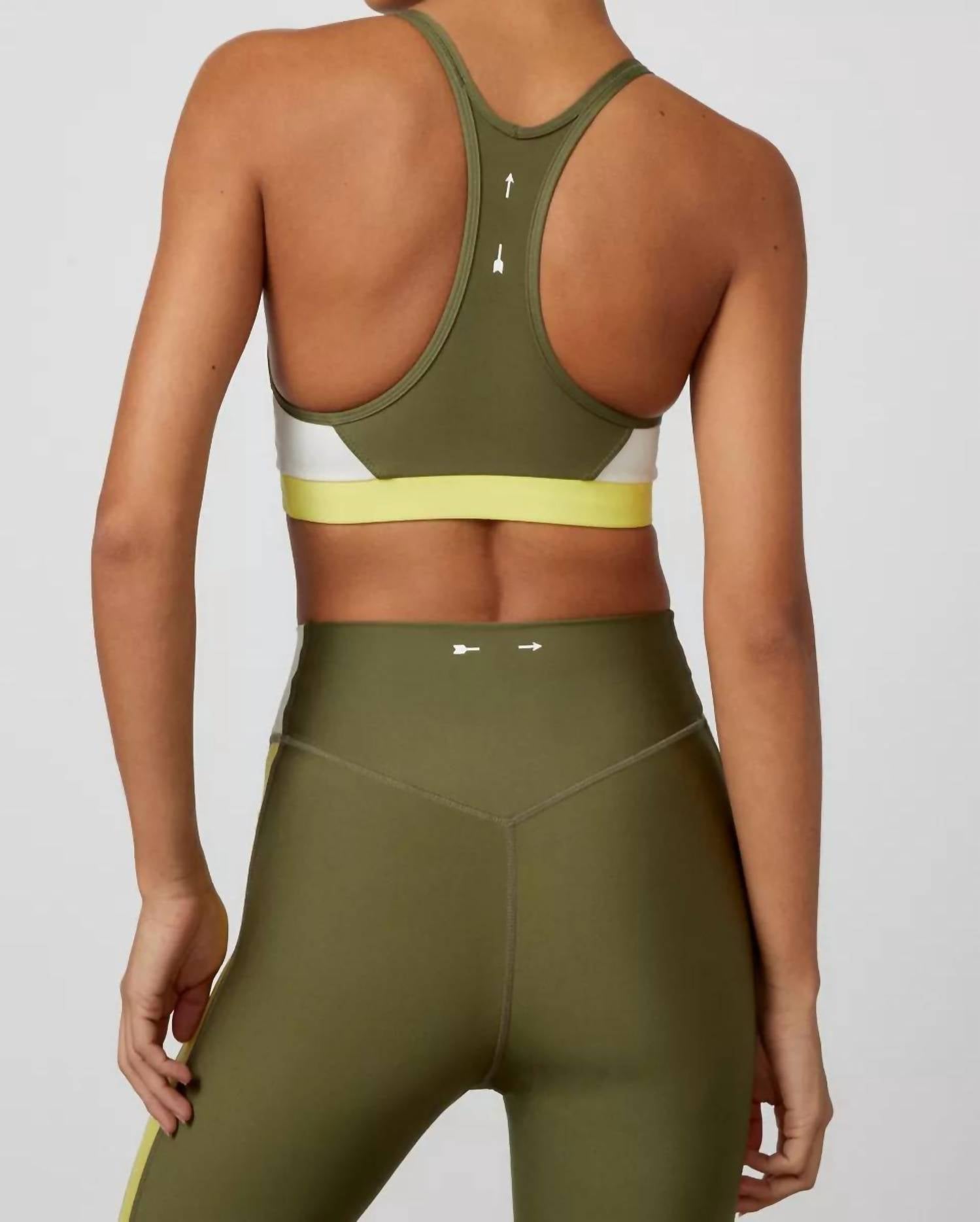 A sports bra that has it all - style, function and support. Introducing the Beat Linda Sports Bra by THE UPSIDE in a chic colorblock details, perfect for your active wardrobe. Crafted from 74% recycled polyamide and 26% elastane, it offers excellent stretch and breathability. This sports bra is made in China, ensuring quality and durability for all your workouts. For care, machine wash cold and tumble dry.