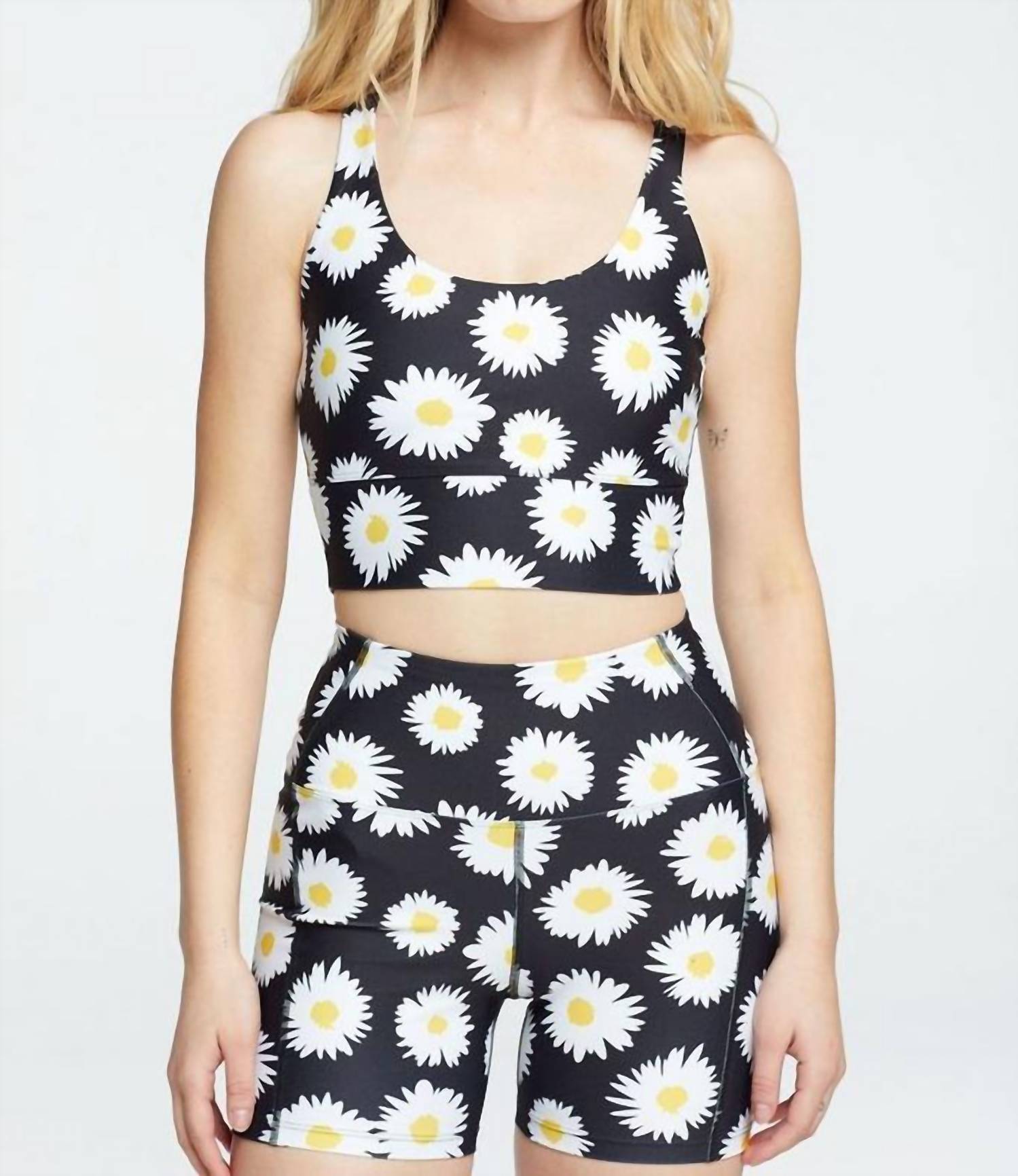 The most comfortable and supportive sports bra you'll own. Elevate your workout wardrobe with the Daisy Gym Sports Bra by YEAR OF OURS, featuring a vibrant floral pattern in multi-color for a fresh spring look. Crafted from a printed active jersey comprising 80% polyester and 20% spandex, this sports bra offers a comfortable and flexible fit made in the USA. Perfect for fitness and workout sessions, it combines style and function seamlessly. Care for it easily with machine wash cold and lay flat to dry. Model wears size small.