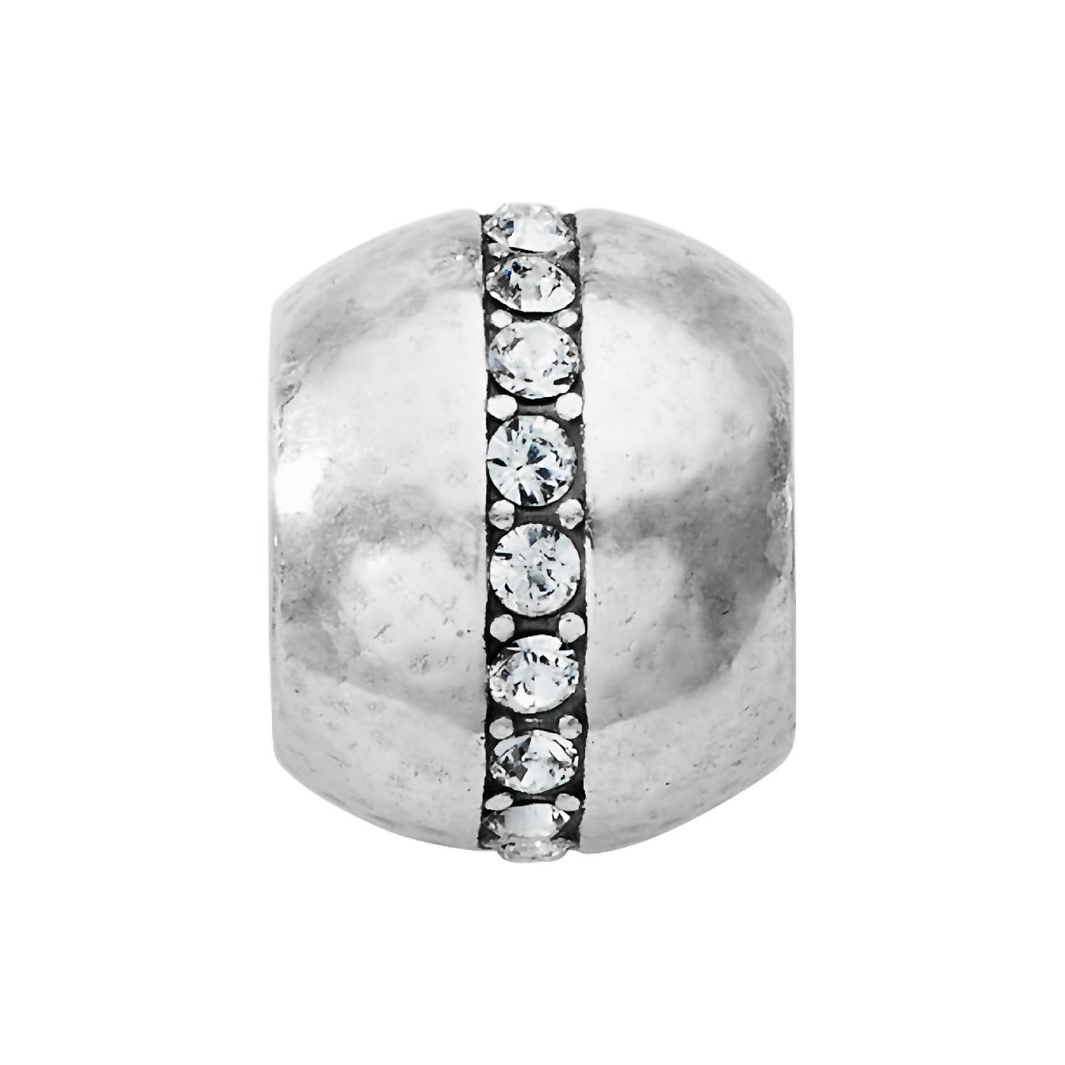 Stacked or solo - you can't go wrong with this bracelet. Hand hammered silver-plated bead with fine quality crystals. 3/8" W x 1/2" H.