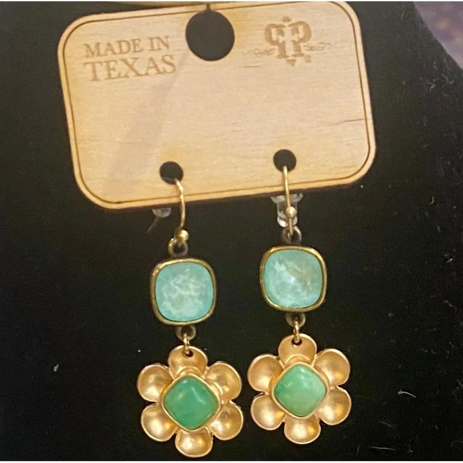 Easy and elegant earrings to complement any outfit. Introducing the Crystal Flower Earrings by Pink Panache, a fresh and feminine accessory perfect for any occasion. Crafted in Texas, USA, these earrings feature a dainty flower design with a 10mm mint Austrian crystal center, set in custom-made hardware. With a length of approximately 1.75 inches, they provide a stylish statement that beautifully balances playful charm with elegance. The natural green cabochon gemstone adds a unique touch, making these earrings a delightful addition to your jewelry collection.
