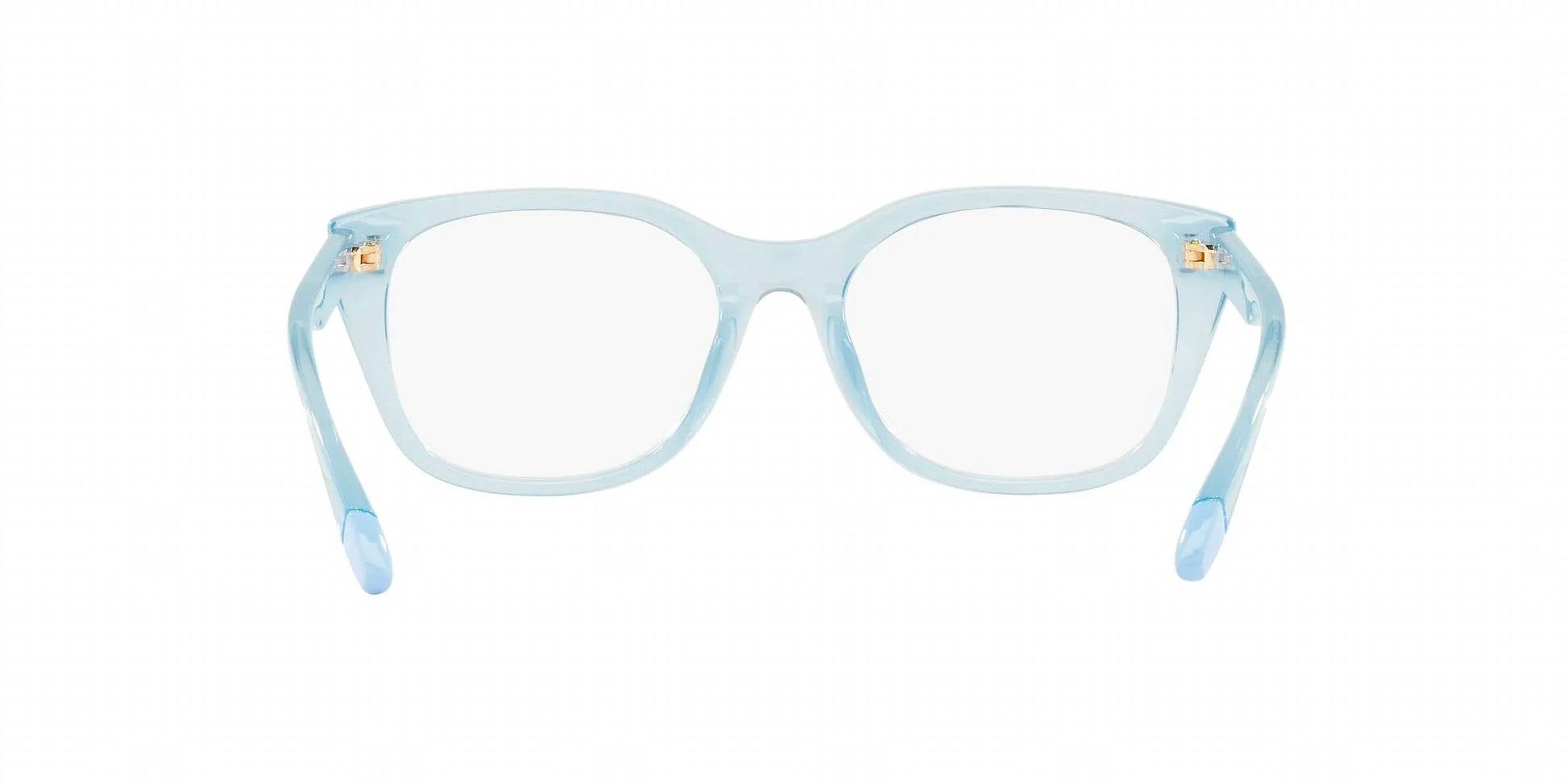 Blending fashion and practicality, these stylish shades are chic and mandatory. Stand out from the crowd and safeguard your vision with these stand-out sunglasses. Discover the Women's Ax3099u Square Eyeglasses by Armani Exchange, a chic accessory in Black/Crystal with a square design. The eyeglass frames feature a Shiny Transparent Azure finish with pointed top angles, crafted from bio-based nylon fiber, emphasizing sustainability with renewable sources. Dimensions include a lens width of 53.0 mm, bridge width of 18.0 mm, and arm length of 140.0 mm. An ideal choice for those seeking both style and environmental consciousness.