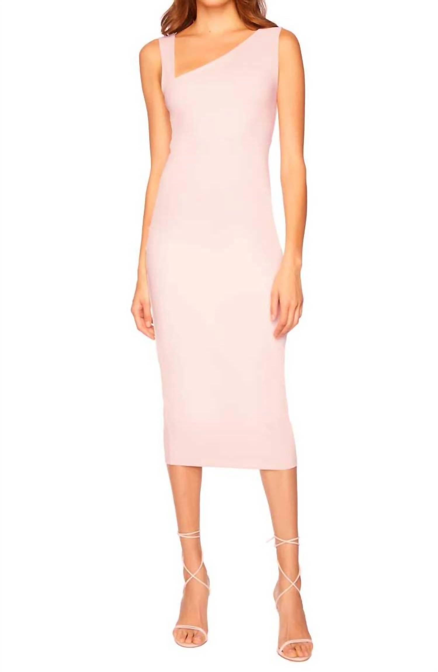 A midi dress so versatile, your options for wearing it are endless. Discover the Susana Monaco Angled Strap Top Midi Dress, a stunning sheath silhouette in elegant nude for any spring occasion. This sleeveless dress features an off-the-shoulder neckline with an eye-catching angled strap design. Crafted from a blend of 90% nylon and 10% spandex, it measures 32" from the waist and boasts a comfortable pull-on closure. Care for this striking piece is a breeze—simply machine wash. Runs small, so consider sizing up for a perfect fit.