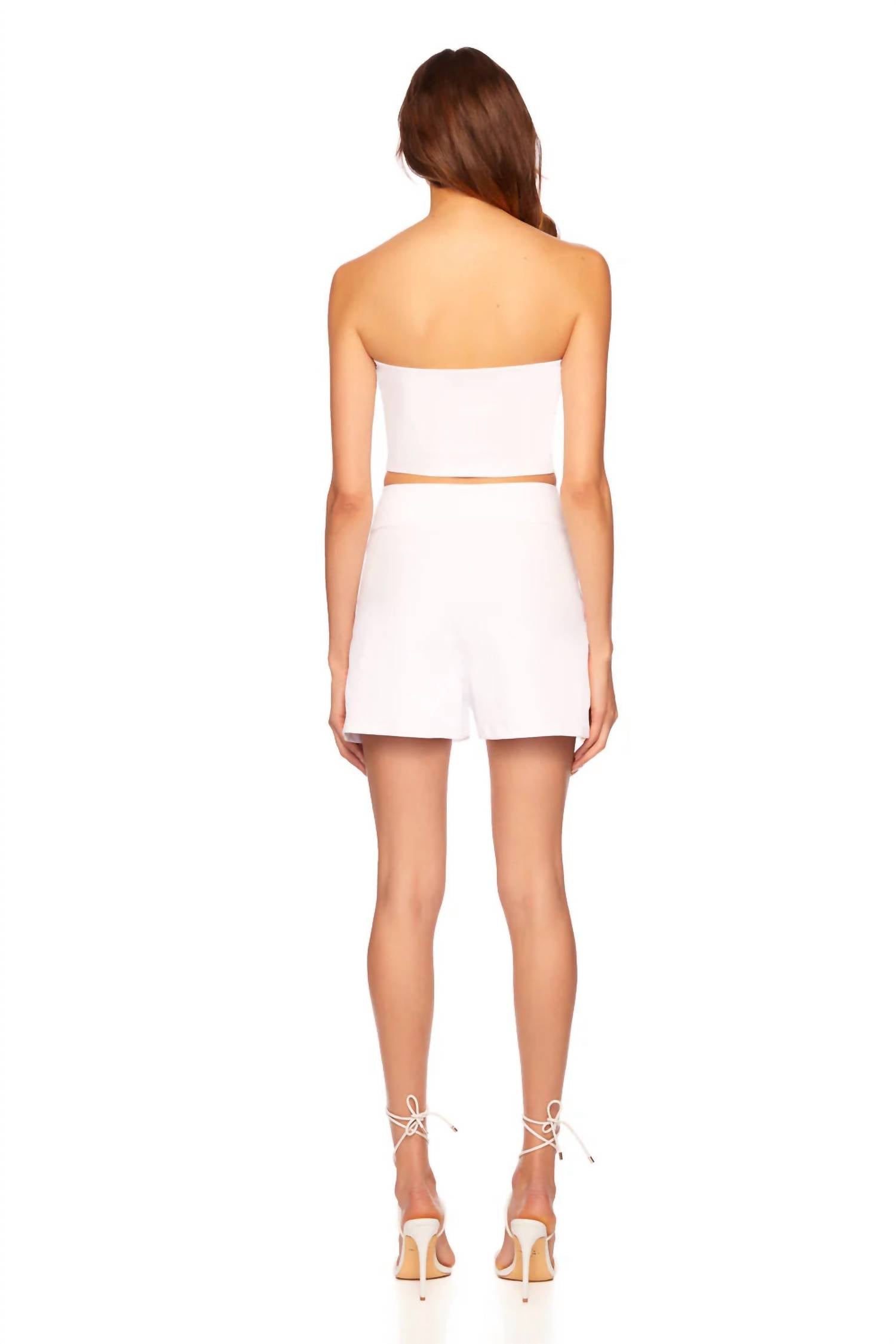 High-waist is here to stay and we especially love this style short. Discover effortless style with the Susana Monaco Pleated Short in Sugar, a high waist staple with a sophisticated pleated design. These women's shorts, patterned in a minimalist solid, are skillfully crafted from a 90% Nylon and 10% Spandex blend offering both comfort and style. Featuring a 3" inseam, pockets, and a convenient pull-on closure, they are perfect for cocktail parties or any spring occasion. Care: Machine wash for easy maintenance.
