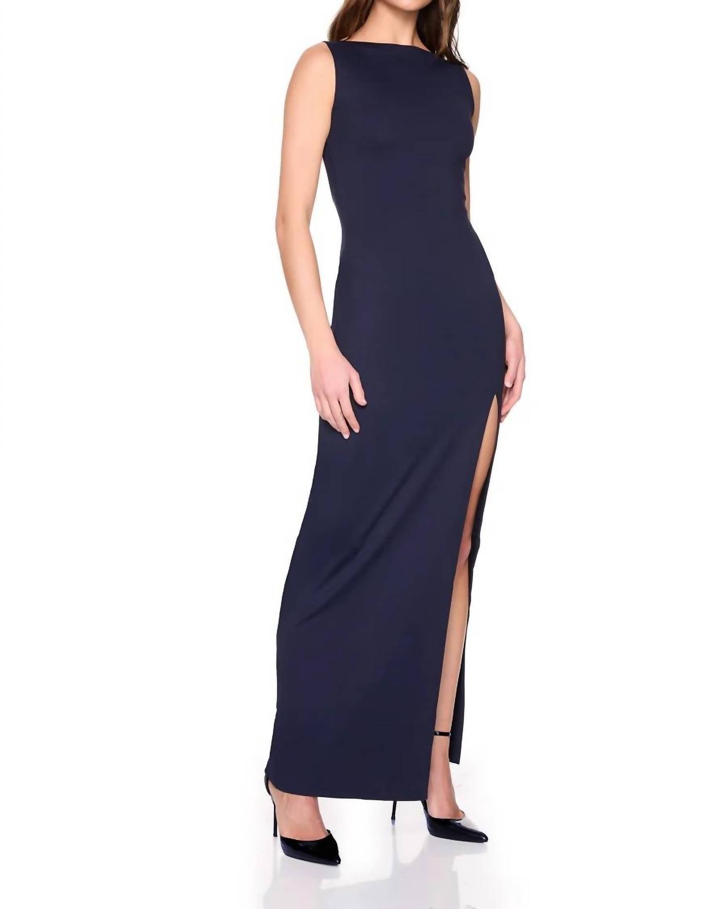 A midi dress so versatile, your options for wearing it are endless. Introducing the Susana Monaco Lowback Tank Slit Dress in an elegant Midnight hue, perfect for a Spring dinner party. This sleeveless midi dress features a sophisticated solid pattern in a nylon blend, providing both comfort and style with its shift silhouette and boatneck neckline. It measures 42" from the waist with a convenient pull-on closure. Expertly crafted for easy care, it is machine washable and should be line dried.