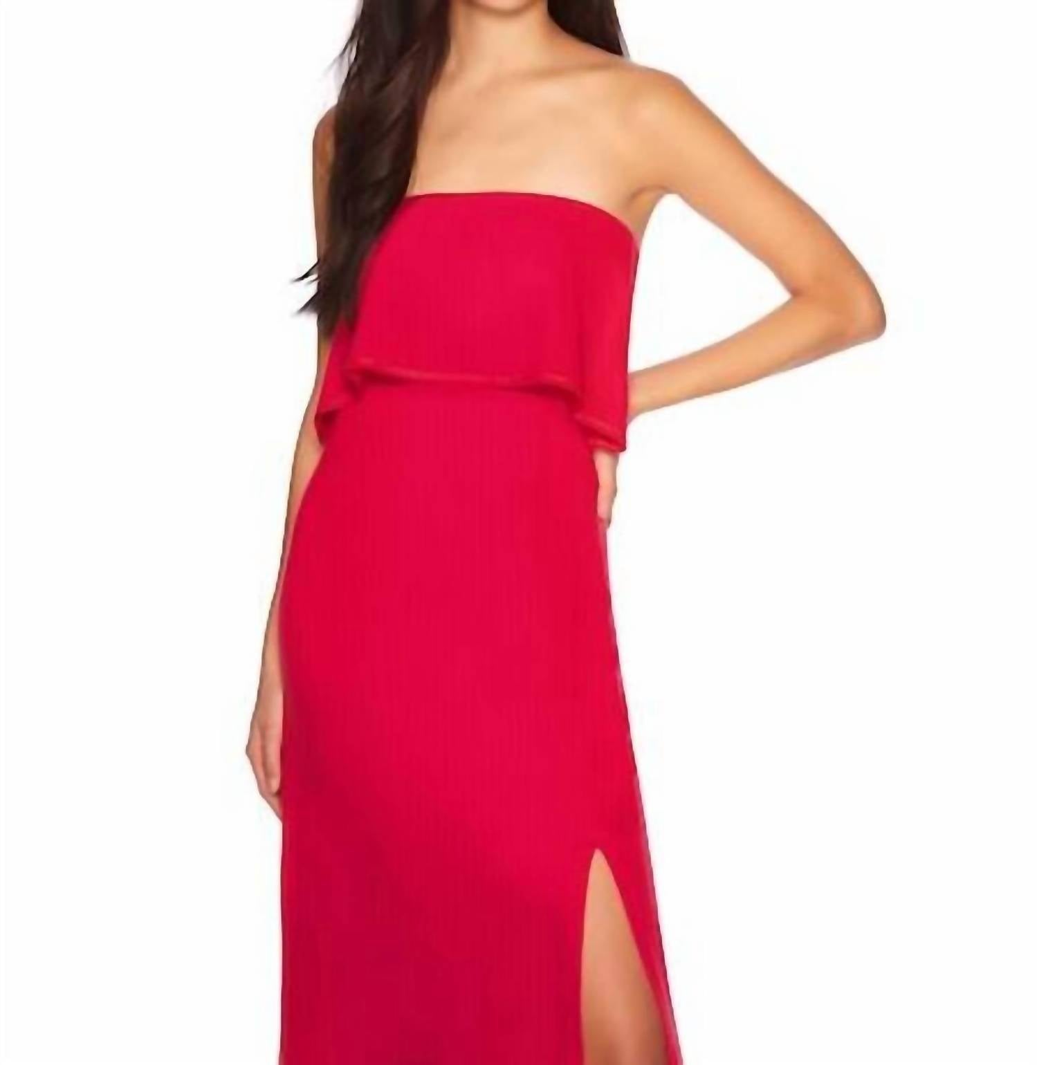 Style this maxi with your favorite statement necklace and sandals for the perfect look. Introducing the Strapless Overlay Slit Dress by Susana Monaco, a must-have for your summer wardrobe in vibrant Hibiscus. This stunning A-line maxi dress features a side slit and an off-the-shoulder neckline, perfect for any vacation occasion. Composition: 96% Nylon, 4% Spandex. Closure: Pull-on. Care: Machine wash, lay flat to dry. The dress measures 42° from the waist, offering a sleek and elegant look with no pockets for a streamlined silhouette.