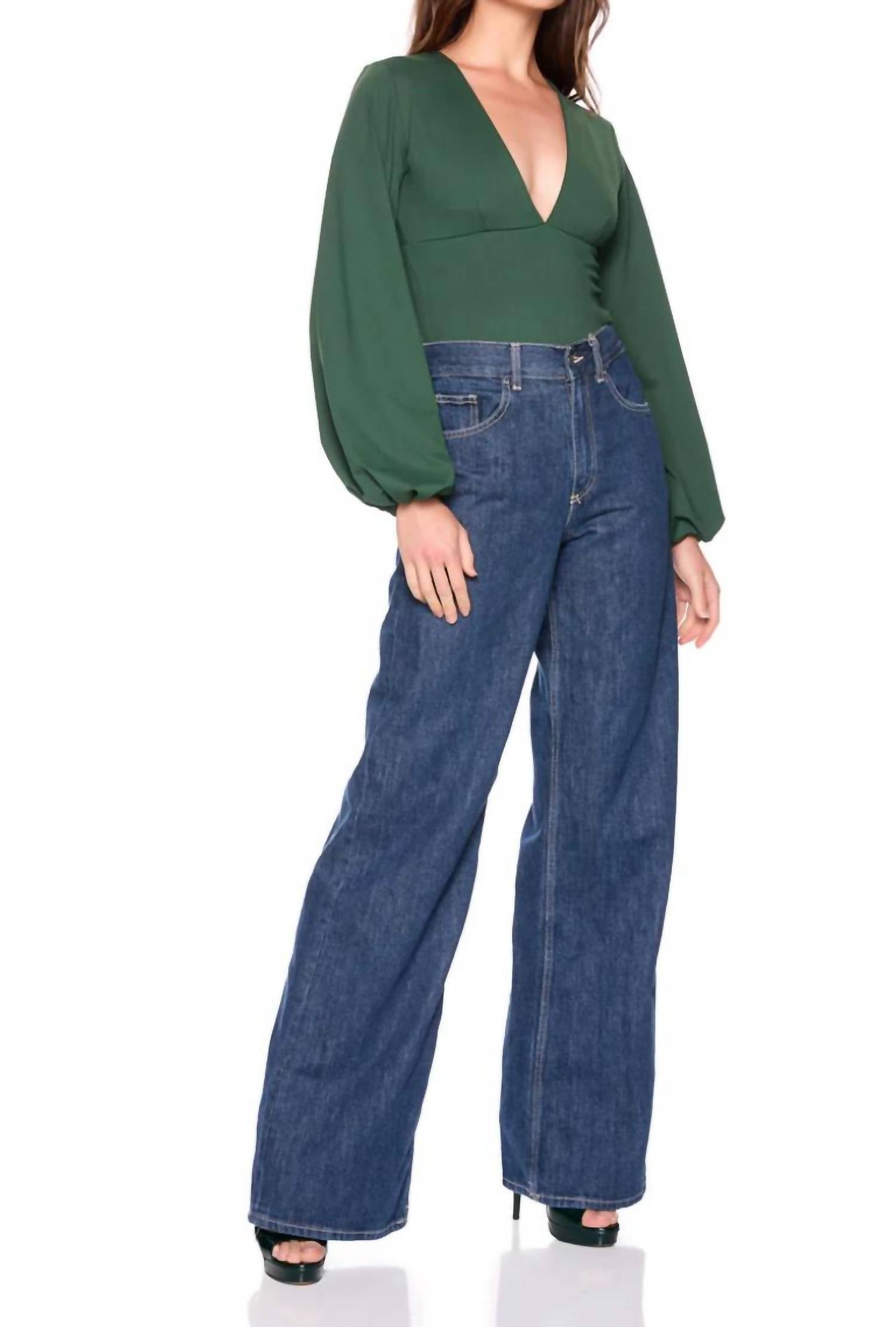 A timeless blouse that will never go out of style. Introducing the Susana Monaco V-neck Bubble Sleeve Top in a rich Kombu hue, perfect for minimalist style during the Thanksgiving season. This solid women's blouse features long bubble sleeves and a deep V-neckline that elegantly accentuates the waist. Composition: 94% Nylon, 6% Spandex. Closure type: Pull on. Ideal for holiday parties this spring, this piece effortlessly combines feminine detailing with a flattering silhouette.