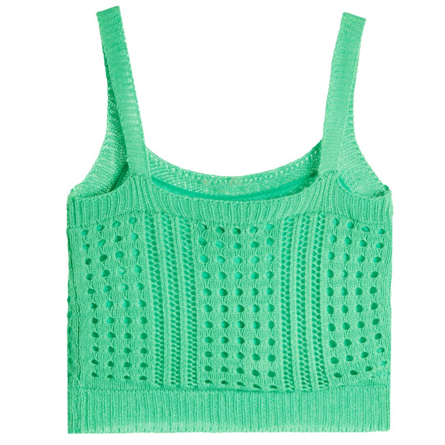 Introducing the Knit Cropped Tank Top by SURF GYPSY, a stylish blend of comfort and fashion perfect for summer adventures. With its sleeveless design and scoopneck, this green knit tank offers a chic, cropped fit that complements any active lifestyle. Crafted from high-quality knit material, it features a patterned design and effortless pull-on closure. Ideal for women seeking a trendy and versatile addition to their activewear collection.