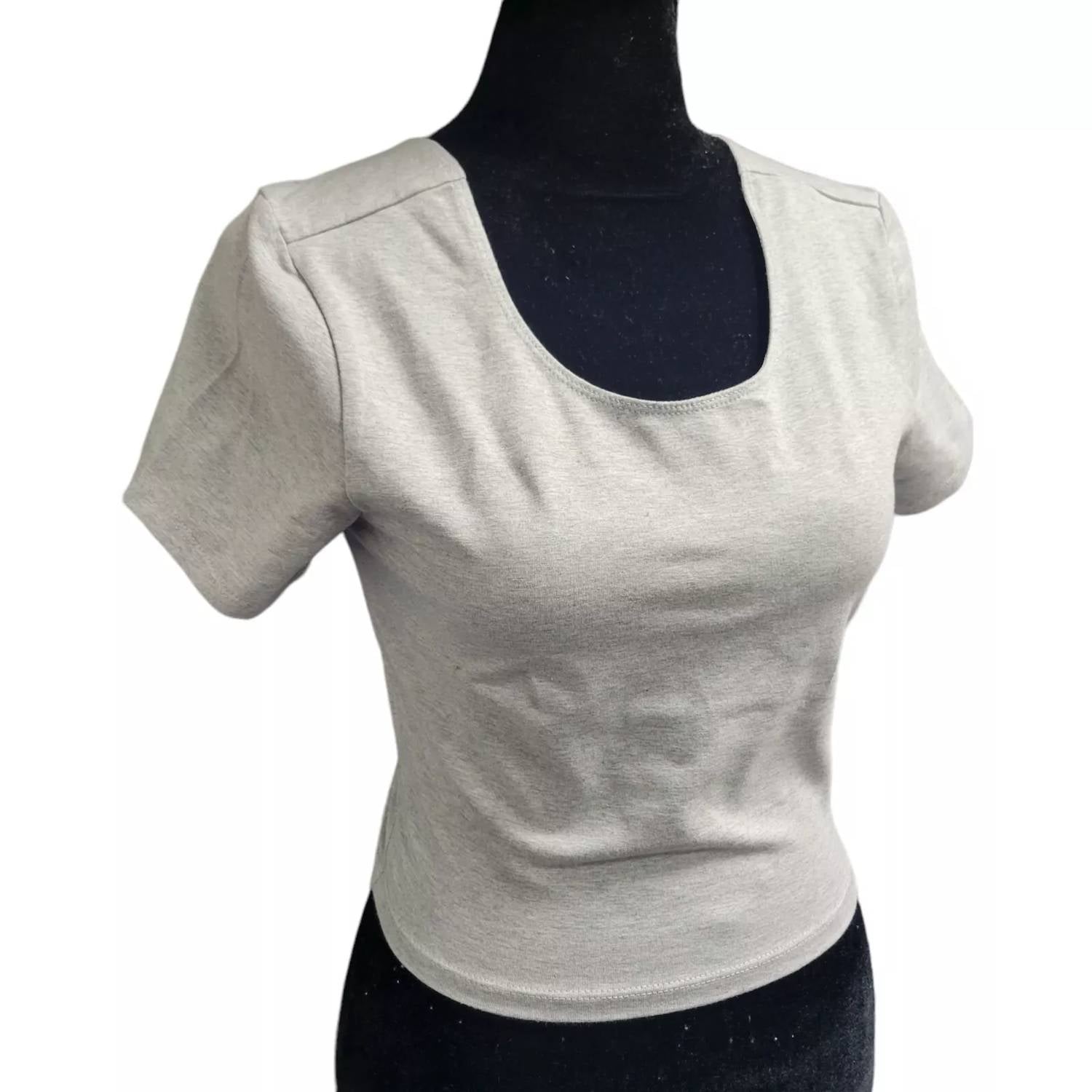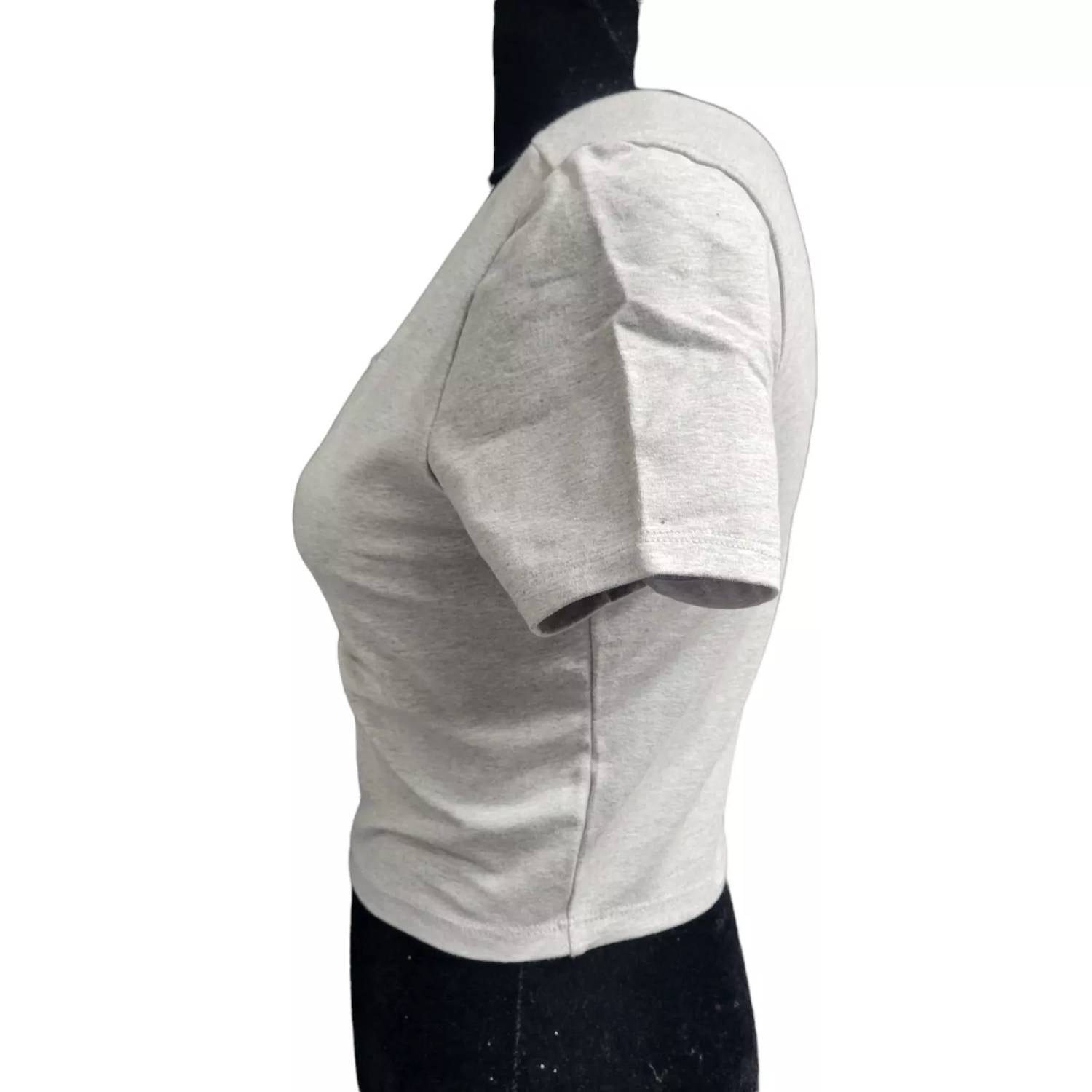 Pair this crop top with your favorite high-waisted jeans or maxi skirt. Discover the ultimate blend of style and comfort with the Women's Cropped Top by American Apparel in Heather Gray. This solid-colored piece features a short sleeve and scoopneck, cut from a 92% Cotton, 8% Spandex blend, ensuring a snug yet flexible fit. With a length of 11" from neck to hem and a bust measurement of 15", it’s perfect for flaunting your midriff. Made for easy living, it comes with a convenient pull-on closure and is machine washable cold, making it as practical as it is stylish.