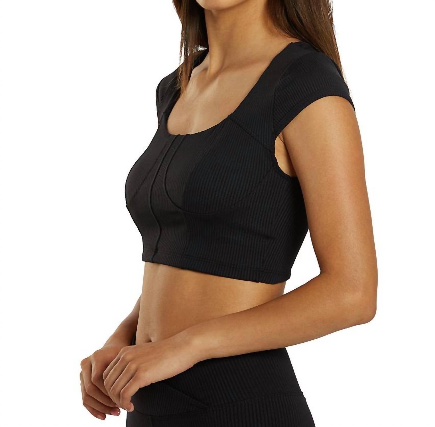 The perfect crop top for those warmer weather days. The Larisa Crop Tee by YEAR OF OURS is an essential activewear piece designed for style and practicality. Featuring short cap sleeves and a scoop neckline, this top is crafted from moisture-wicking ribbed fabric composed of 87% polyester and 13% spandex. Made in the USA, it offers low impact support and a pull-on closure for easy wear. Care is simple with machine wash and line dry instructions.