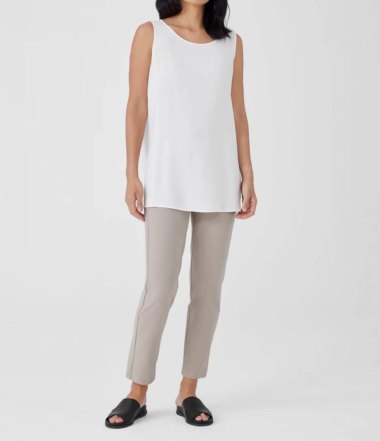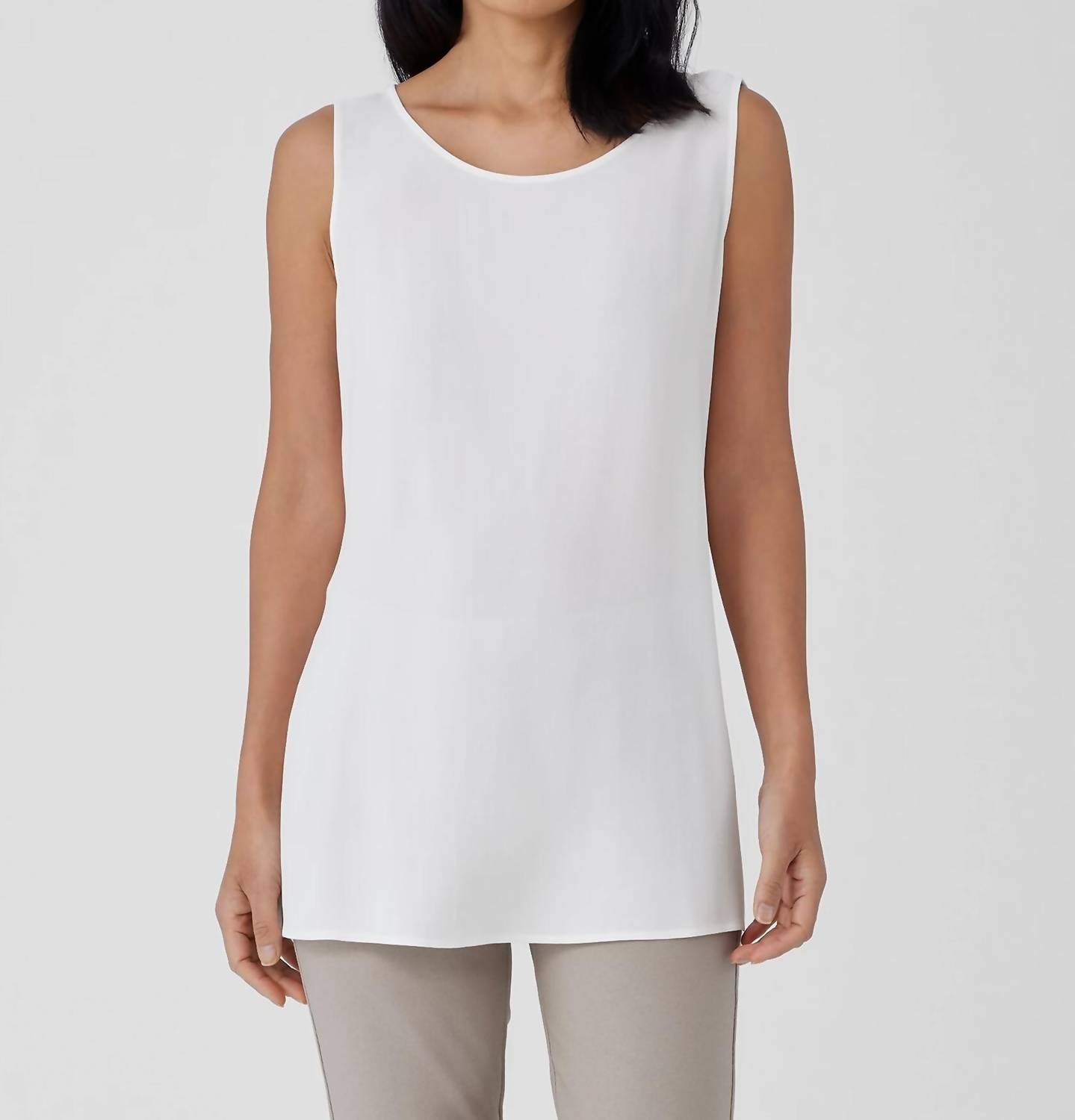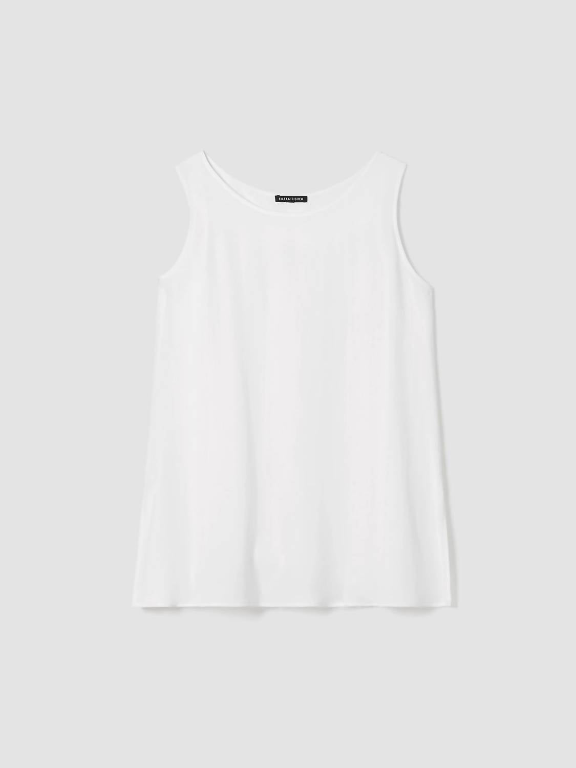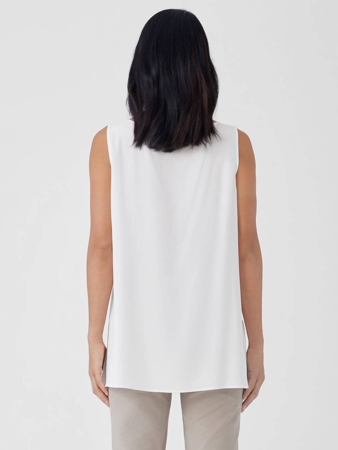 Eileen Fisher - Silk Georgette Crepe Ballet Neck Long Tank