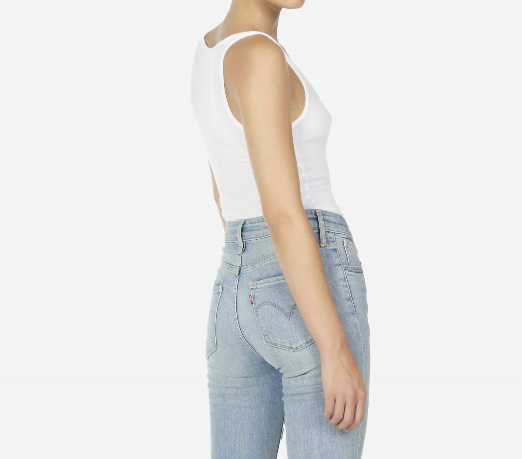 This classic tank top is perfect for layering and cute enough to wear on its own. Elevate your wardrobe with the Murphy Front Open Slit Tank by MICHAEL LAUREN, a chic addition to your essentials. This sleeveless tank is crafted from 94% rayon and 6% spandex, featuring ML's signature soft 2x1 rib knit fabric for ultimate comfort. Designed with a modern front slit neckline and a fitted silhouette, it serves as a perfect layering piece or a stand-alone statement in solid white. With a pull-on closure and minimalist appeal, this versatile piece is suitable for any dinner party. Model is 5'9" wearing size S (Waist: 24", Bust: 32", Hip: 34").