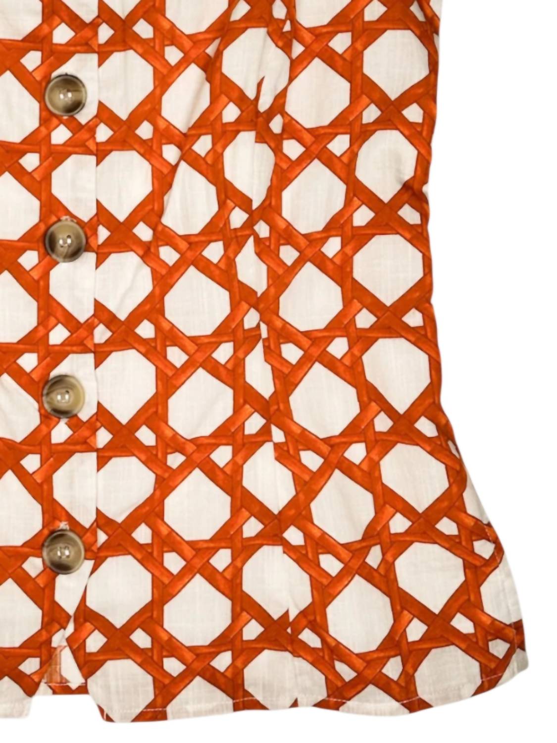 This classic tank top is perfect for layering and cute enough to wear on its own. Elevate your game day ensemble with the Harris Tank by Anna Cate, featuring slender spaghetti straps and a chic button-down front in a playful Trellis pattern. Crafted from 100% cotton, this tank pairs effortlessly with the matching Lizzie shorts for a stylish coordinated look. Designed for summer and 4th of July festivities, the square neckline and whimsical print lend a touch of Boho Chic to any vacation occasion. Care for this garment with a steam iron to maintain its sophisticated yet spirited appeal.