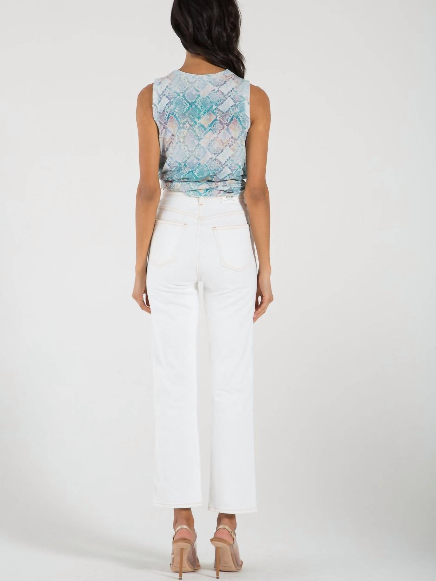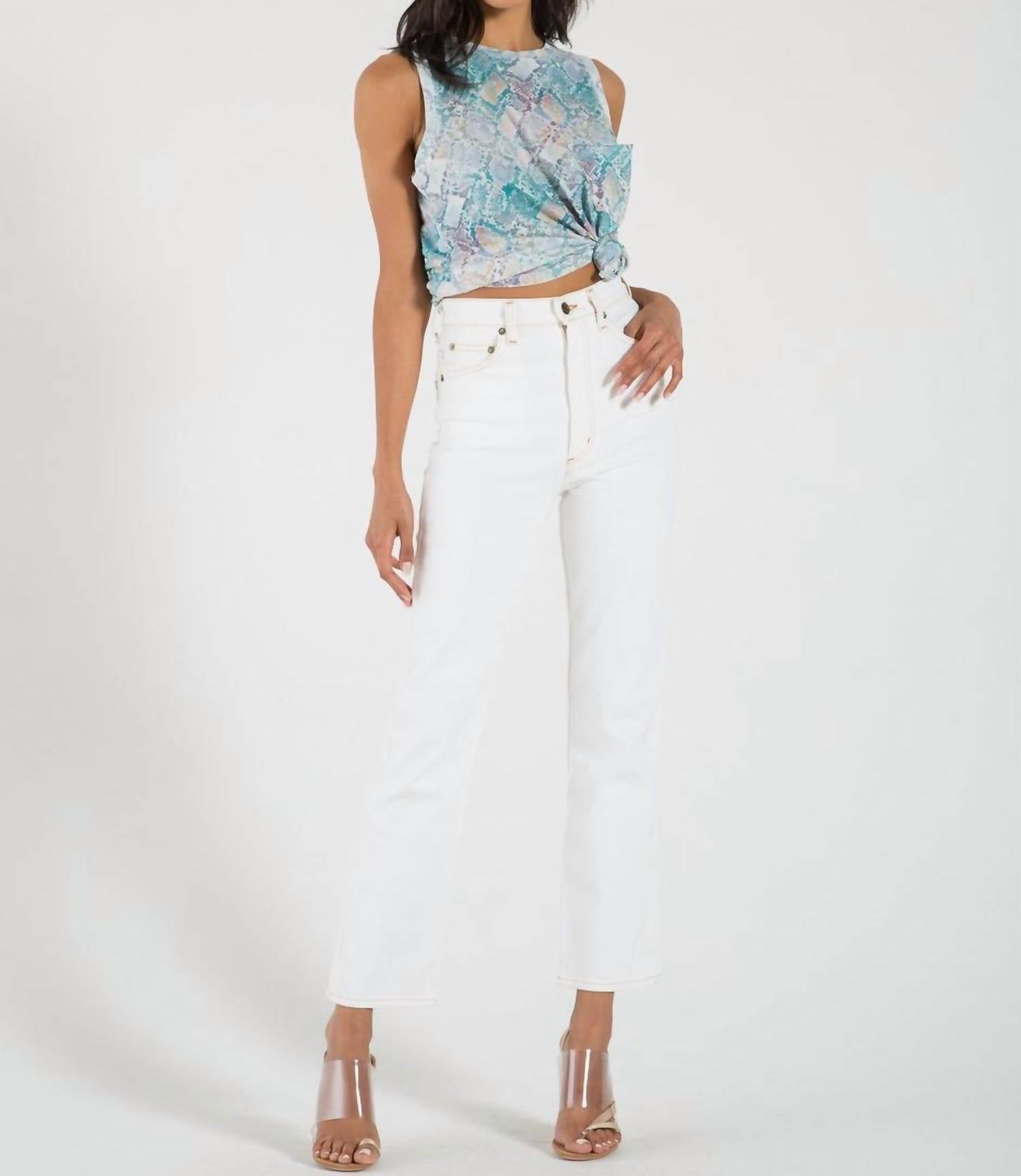 Embrace the warm weather in this high-neck tank boasting a colorful snake print with pastel hues to complement your favorite bottoms.Relaxed Fit Crew Neck Tank with Front PocketFits True to Size