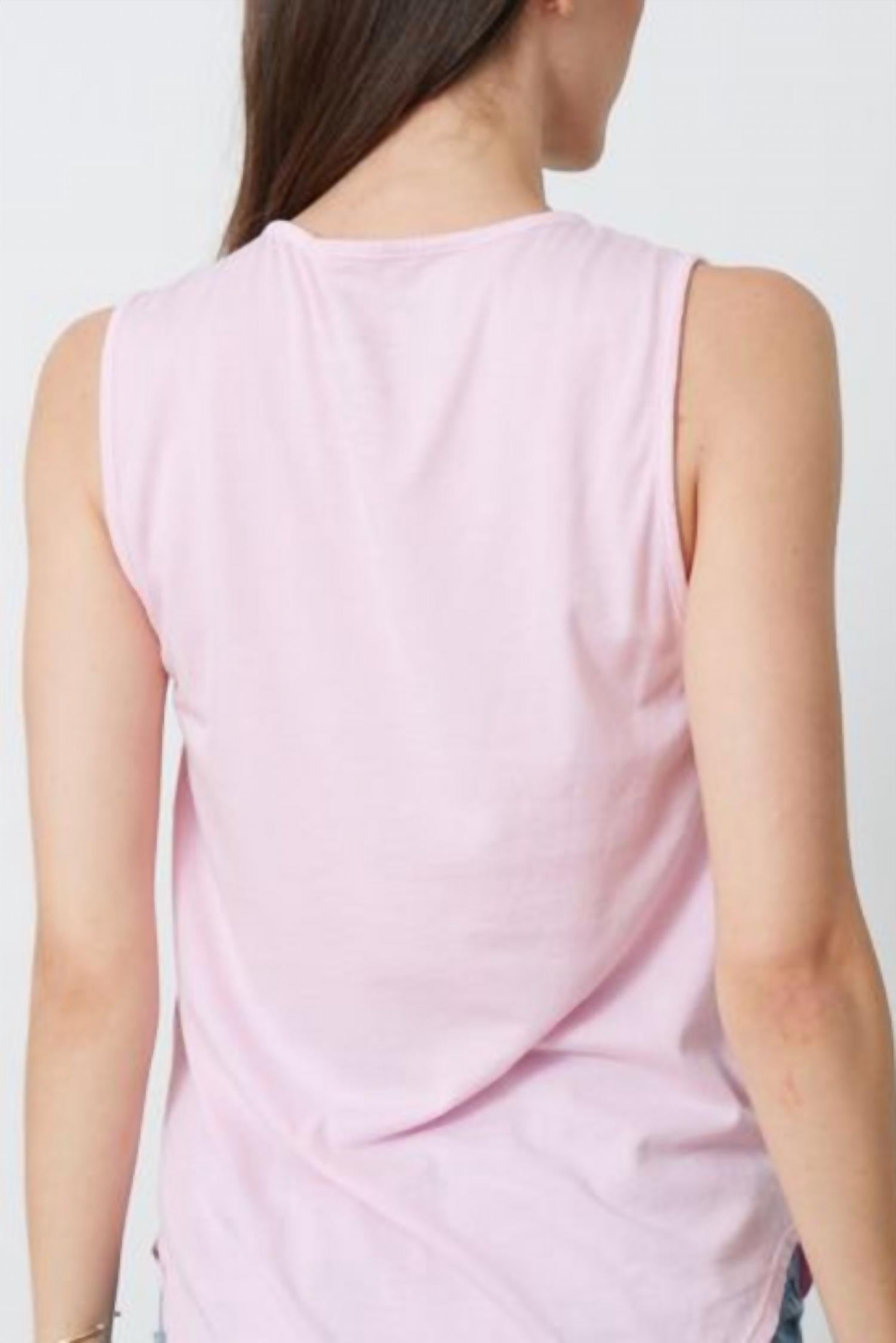 The perfect tank top for those warmer weather seasons. Meet the Radiate Positivity Tank Top by good hYOUman, a chic addition to your wardrobe with its graphic design in a vibrant Sassy color. This sleeveless tank is crafted from the brand's signature Cloud Fabric, a blend of 50% Cotton and 50% Modal that offers a soft and comfortable feel. Designed with a crewneck and pull-on closure, it's perfect for layering or wearing alone. Care instructions: Machine wash cold, tumble dry low. Model is 5'8" and wearing a size S.