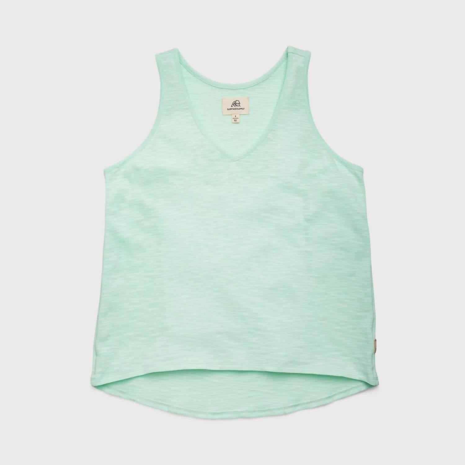 Fit, fabric and functionality. This tank top checks all the boxes. This sleeveless tank, crafted from an 80% Cotton and 20% Recycled Cotton blend, offers a soft feel and breathability throughout the day. The V-neck design with a racer collar and scooped hi-low hem adds a modern flair. This pull-on style is machine washable with like colors and can be tumble dried on low heat for effortless care.