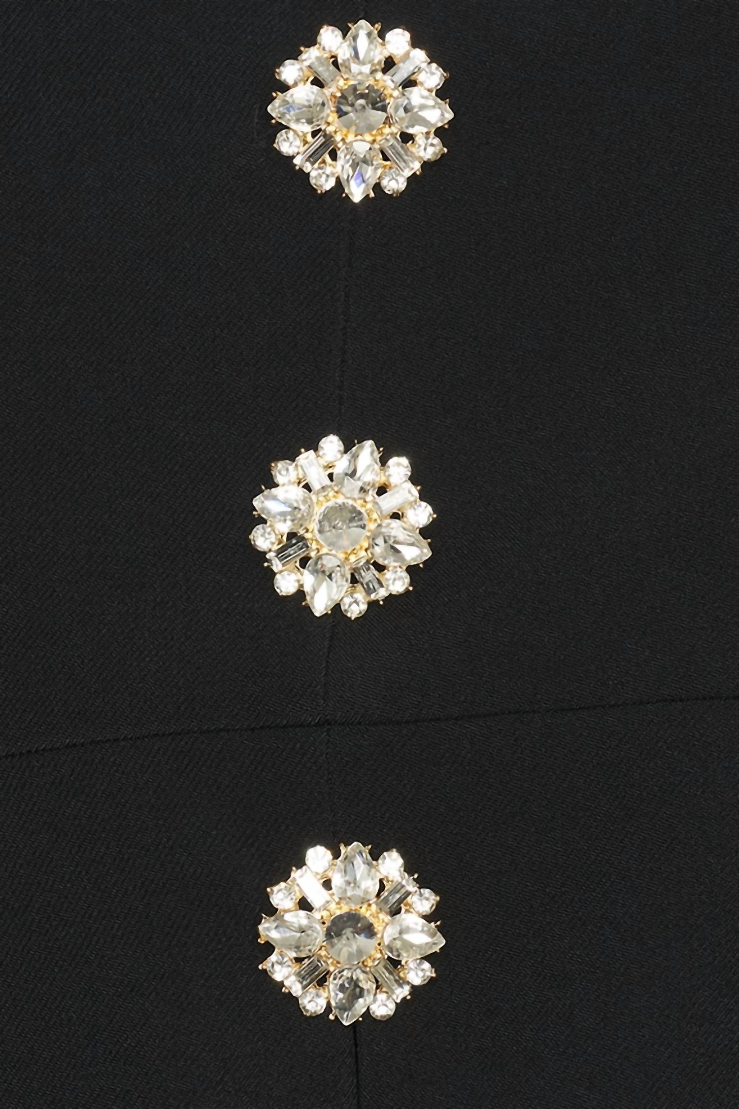 The perfect crop top for those warmer weather days. Introducing the Annemarie Strapless Top by ASTR, the epitome of modern elegance perfect for cocktail parties or a stylish New Year’s Eve celebration. This strapless crop top, crafted from 95% polyester and 5% elastane, features medium-weight twill and is made in China. Embellished with large rhinestone buttons and a reinforced upper part, it offers both luxury and structure. Closure: Visible back zipper. Care: Hand wash cold or dry clean.