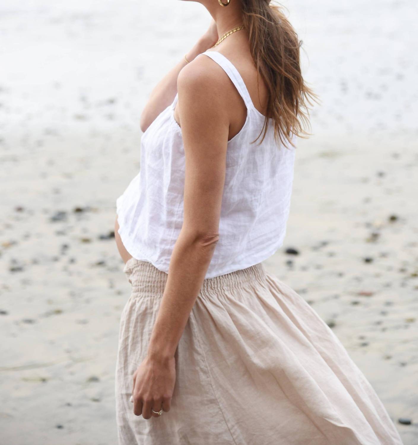 The perfect tank top for those warmer weather seasons. Discover the Blanco Playa Tank Top by Beachwood Baby, a minimalist piece designed for both elegance and casual charm. This reversible top is crafted from 100% high-quality linen, proudly made in Italy, ensuring both durability and a luxurious feel. Featuring a versatile pull-on design with a scoop neckline and playful, stylish straps, it's perfect for warm summer days. Care: Machine wash cold and line dry; for best preservation, hand wash and air dry.