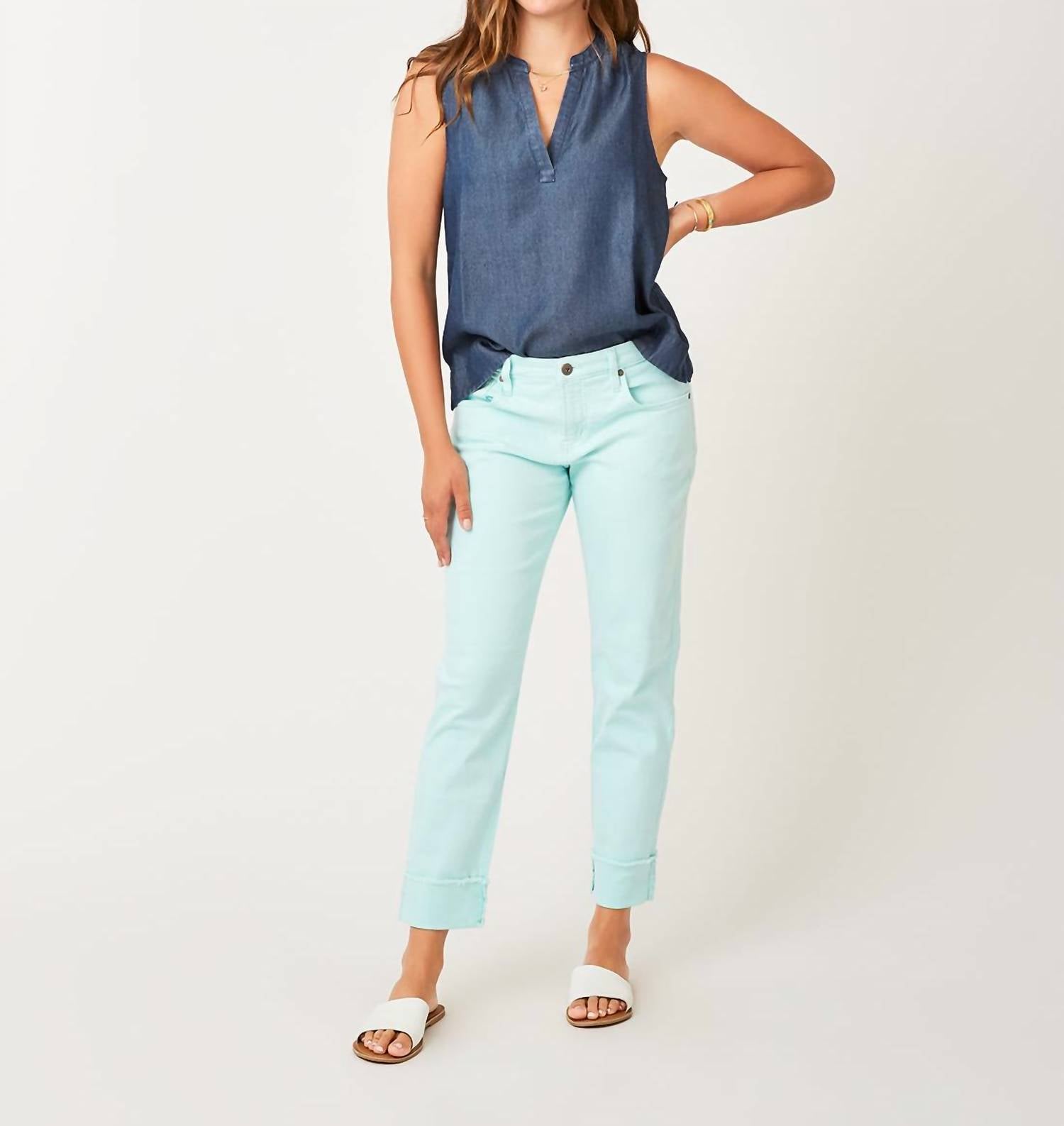 The perfect tank top for those warmer weather seasons. Experience effortless style with the Women's Dylan Tencel Tank Top by Carve Designs, crafted in a rich dark chambray hue. This sleeveless, solid-patterned tank features a flattering V-neckline and a convenient pull-on closure, perfect for summer getaways and vacation wear. Its breathable material ensures you'll stay comfortable all day, while machine wash and tumble dry instructions provide easy care. Embrace a maximalist trend with this versatile piece, designed with no pockets to maintain a sleek look.