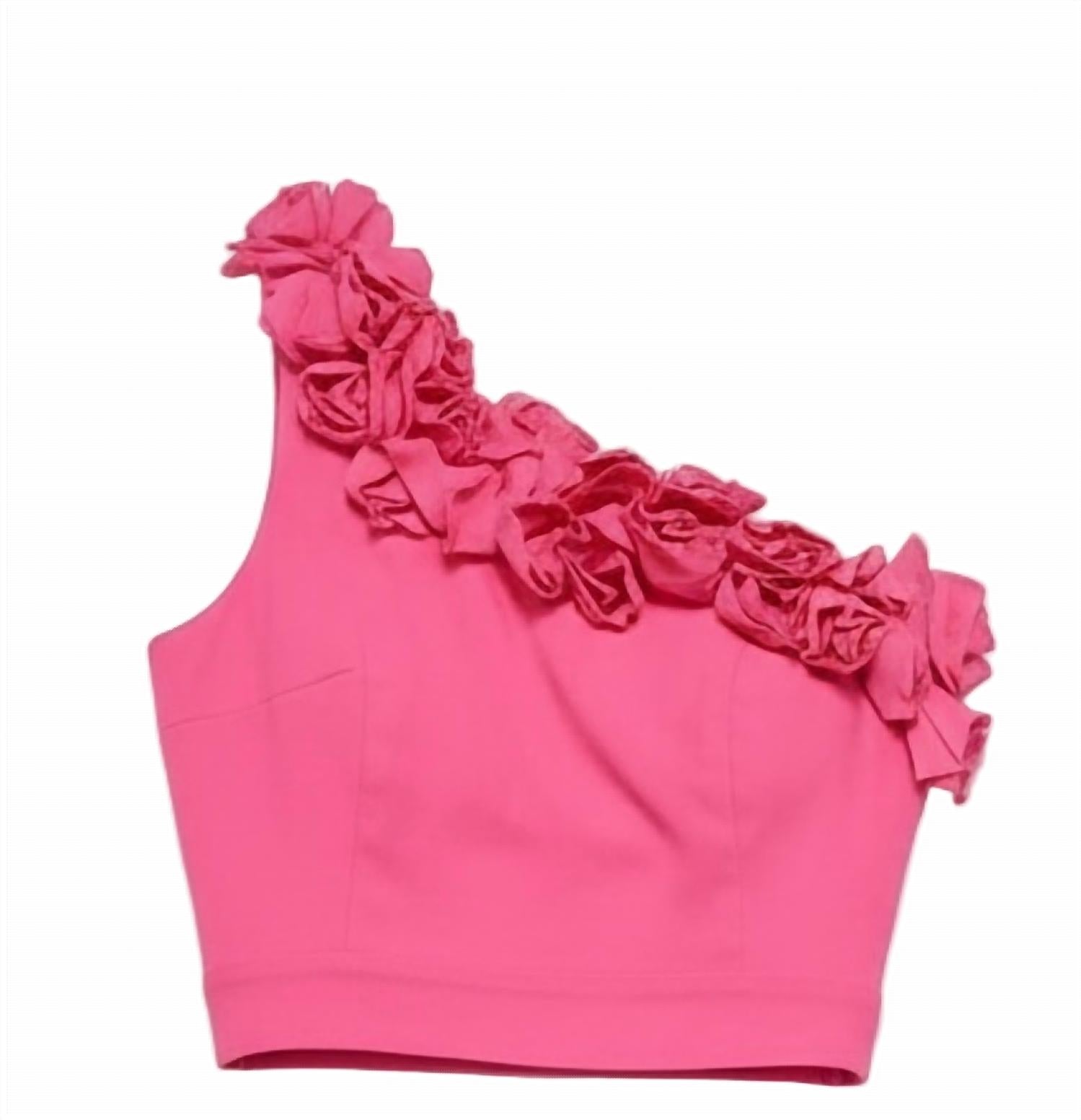 Pair this crop top with your favorite high-waisted jeans or maxi skirt. Elevate your cocktail party style with the Vivienne One Shoulder Top by DO+BE in a stunning pink hue. This minimalist crop top is designed with spaghetti straps and a chic off-the-shoulder neckline, perfect for a summer occasion. Featuring a tie closure for an adjustable fit.