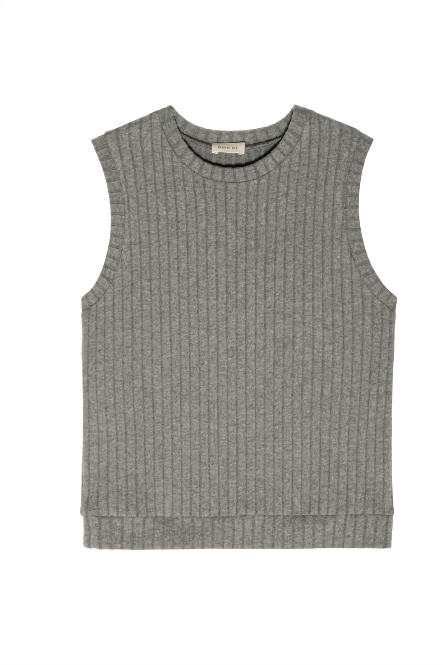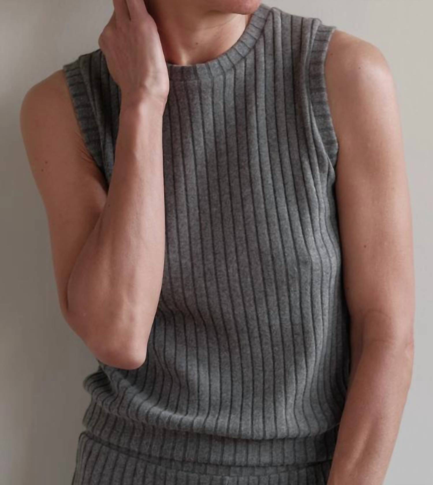 Fit, fabric and functionality. This tank top checks all the boxes. Experience effortless sophistication with the Sweater Rib Shell Tank Top by DONNI. in a chic Charcoal Grey. This sleeveless tank features a classic crew neckline and a banded hem, offering an elevated touch to its textured pattern. Crafted from our ultra-soft sweater rib fabric and designed in Los Angeles, it’s perfect for summer occasions. Simply pull on for easy wear, and maintain its luxurious softness by hand washing and tumble drying as needed.