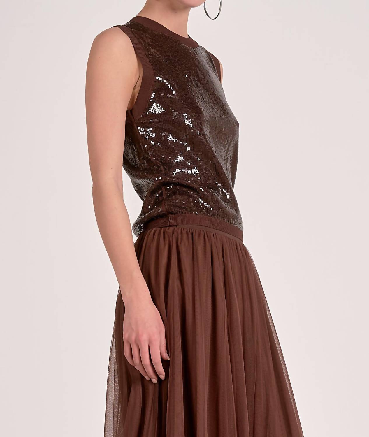 The perfect tank top for those warmer weather seasons. Elevate your dinner party ensemble with the Women's Harlow Tank Top by ELAN, a minimalist piece in a sophisticated brown hue. This sleeveless tank top features a textured pattern and a classic crewneck design, perfect for those stylish fall occasions. Made in an effortless pull-on style, it is versatile yet chic.