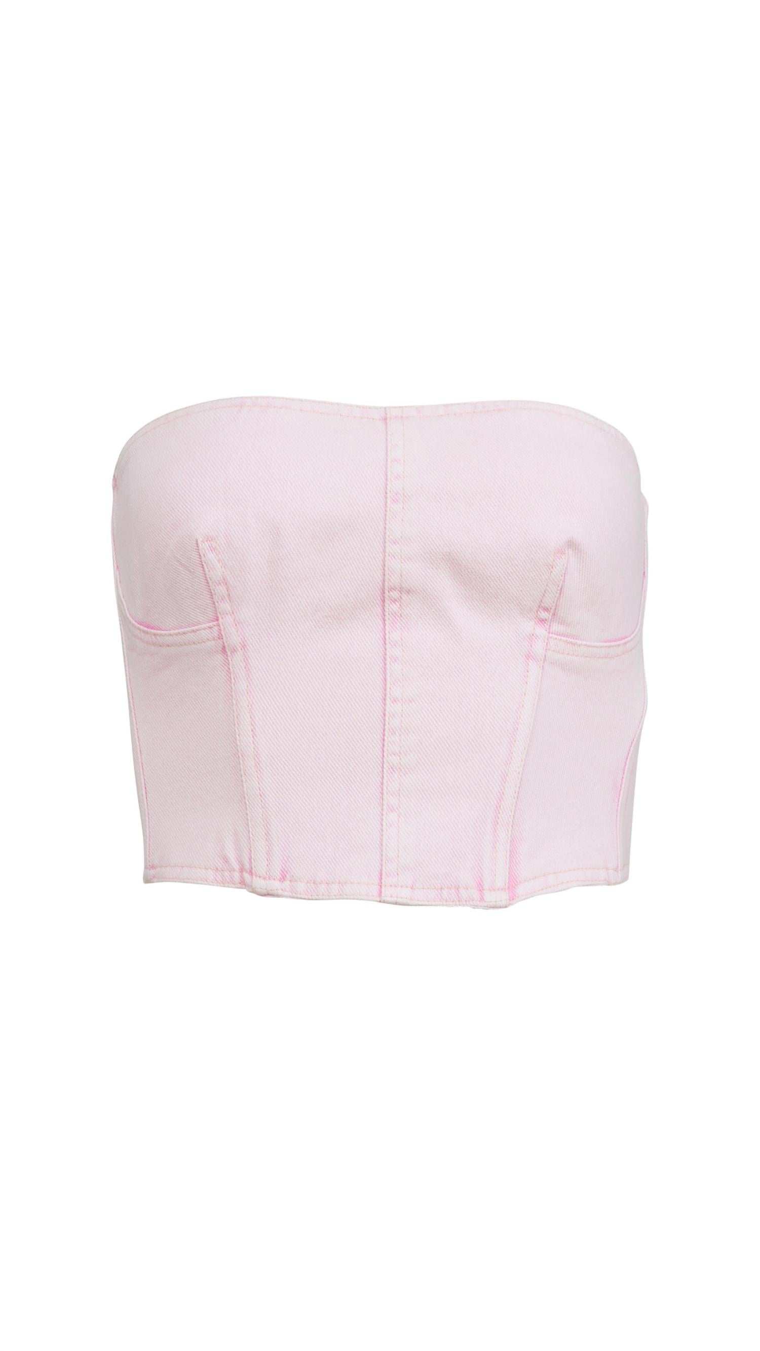 The perfect crop top for those warmer weather days. Elevate your style with the Denim Bustier Top by Fleur Du Mal, a chic piece in vibrant pink perfect for any spring occasion. This strapless crop top features a sleek square neckline and a solid minimalist design, enhancing its modern appeal. Made in Turkey, it ensures quality craftsmanship, complete with a convenient zip closure for ease of wear. For maintenance, machine wash and line dry to keep it in pristine condition.
