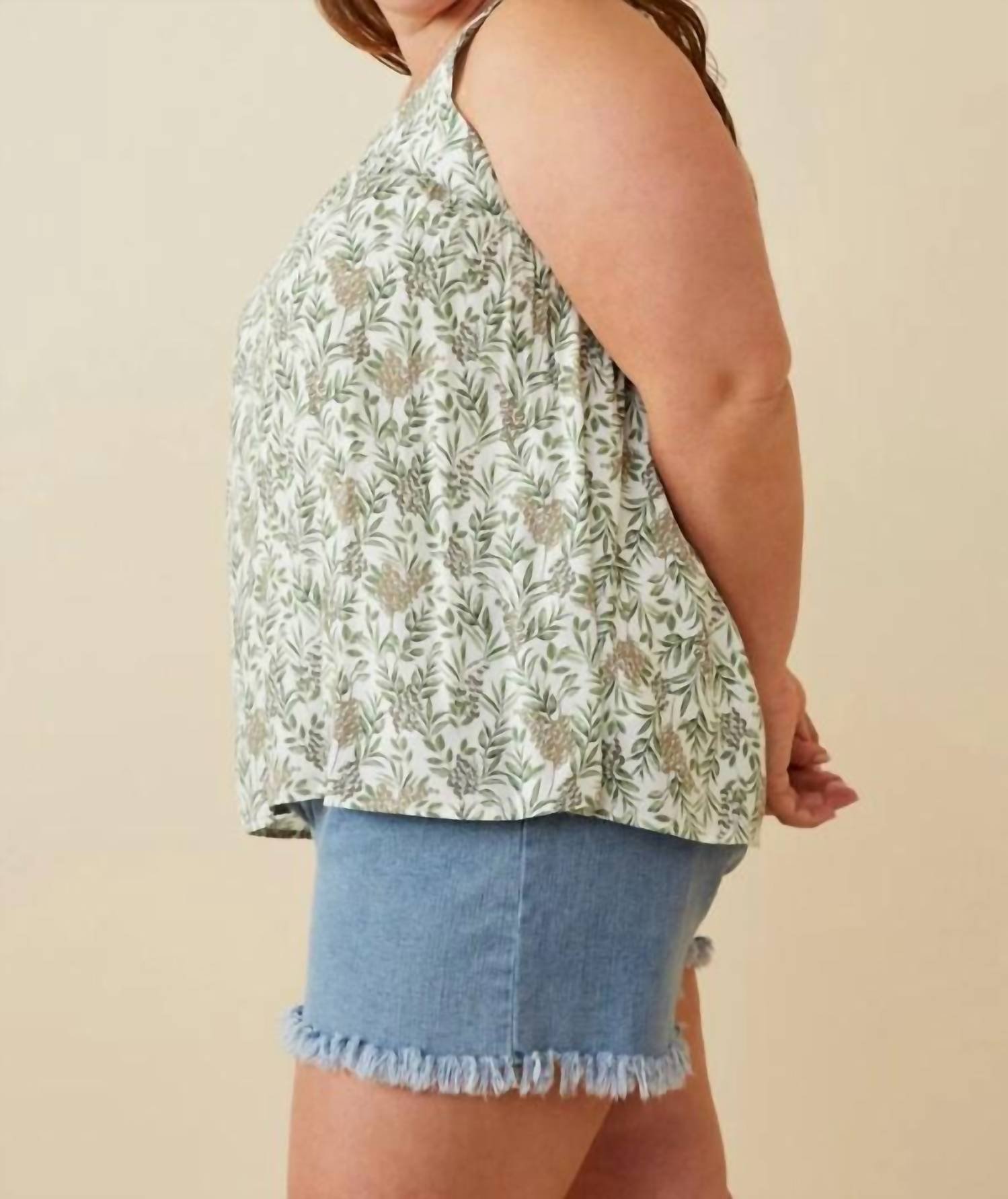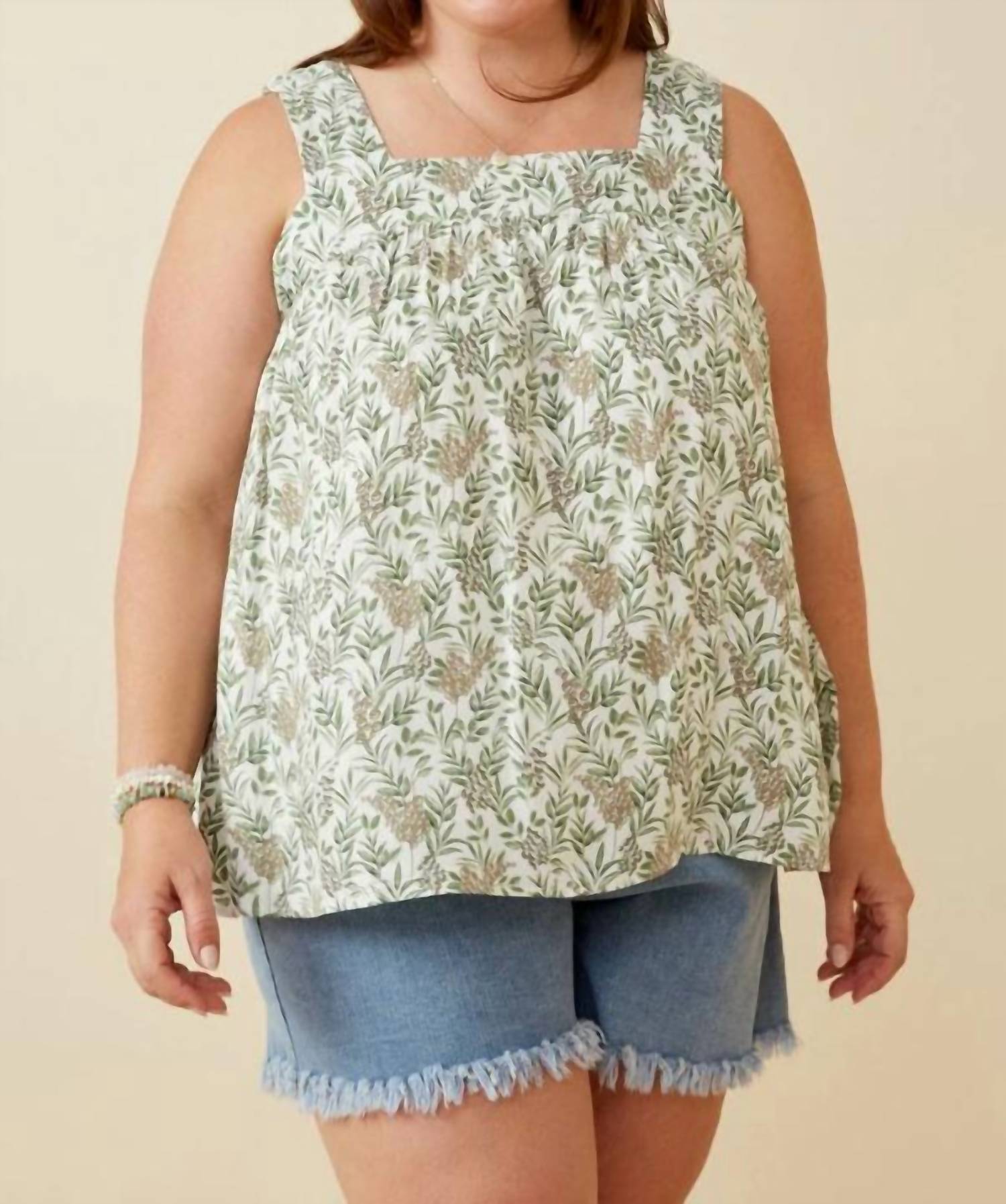 This classic tank top is perfect for layering and cute enough to wear on its own. Embrace vacation vibes with the Botanical Print Square Neck Handkerchief Tank by Hayden LA, perfect for spring outings. This women's tank top features a stylish squareneck and short sleeves, bringing a maximalist touch to your wardrobe. Composition: 100% Rayon. Closure: Pull on. Care instructions include machine wash and tumble dry. Ideal for those seeking plus-size patterned tops in a trendy botanical print.