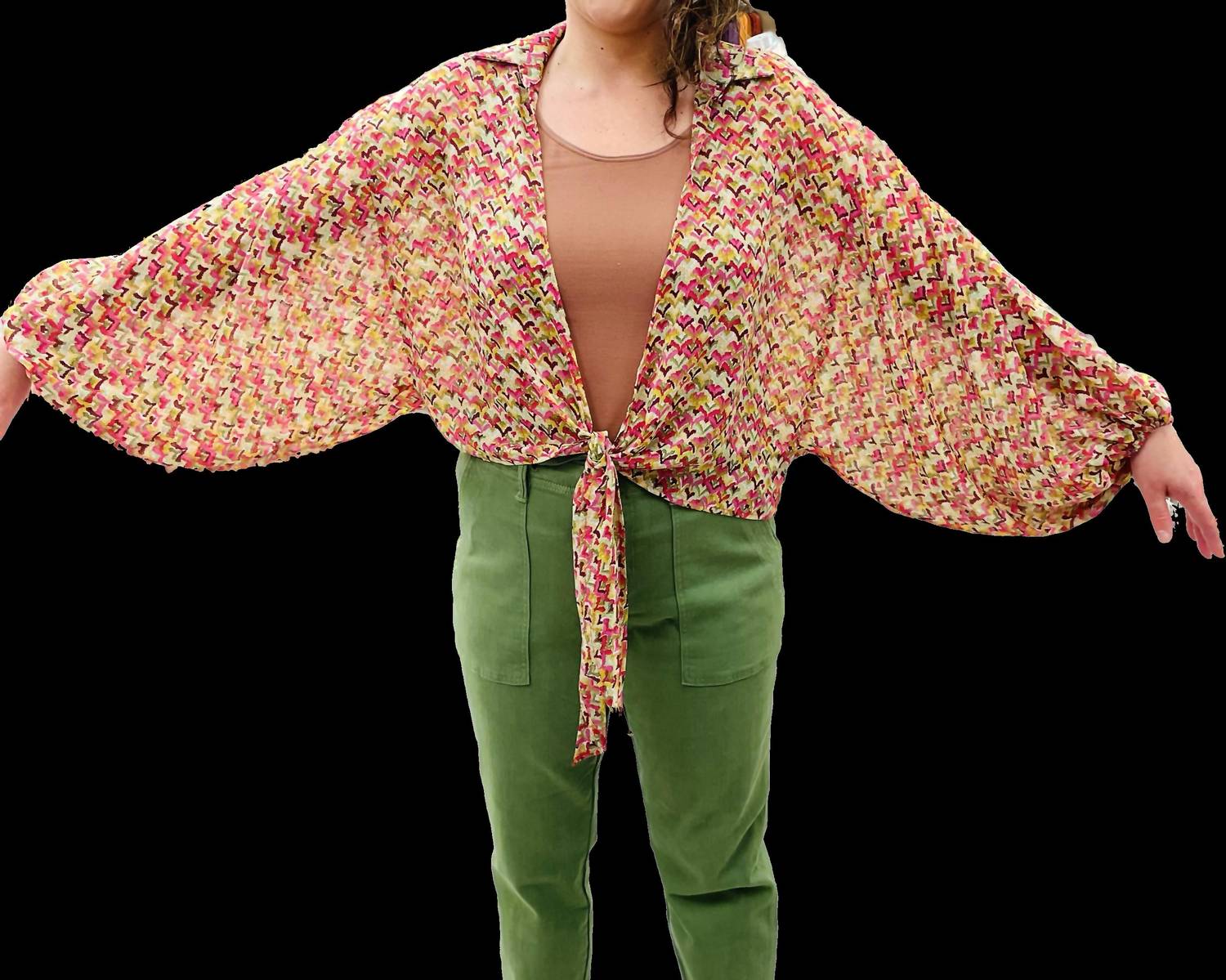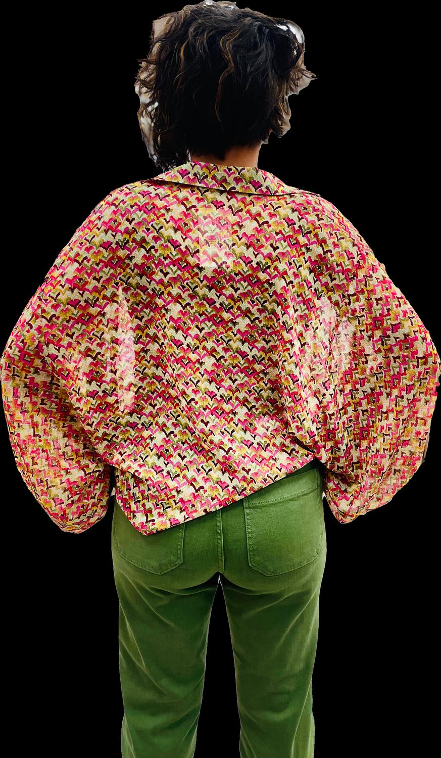 Jade By Jane - Crop Balloon Sleeve Tie Kimono