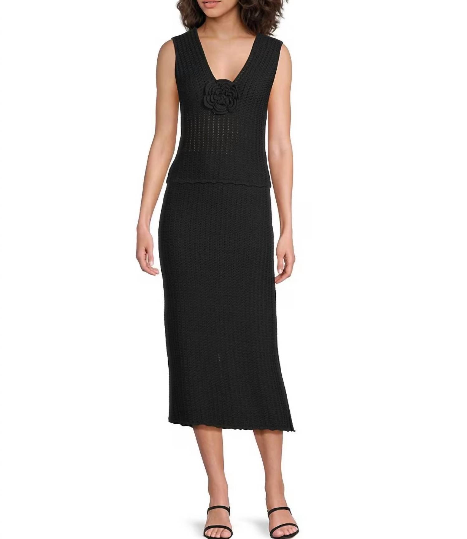 This classic tank top is perfect for layering and cute enough to wear on its own. The Nara Rosette Crochet Top by Lucy Paris is a chic addition to any summer wardrobe, featuring a sleeveless design with wide straps and a flattering crop silhouette. Crafted from a textured nylon blend, this black tank top boasts a V-neckline with a standout center 3-D rosette. Originating from a boho chic trend, it measures approximately 19.5" in length and features a comfortable pull-on closure. For care, hand wash and lay flat to dry, making it perfect for vacation occasions.