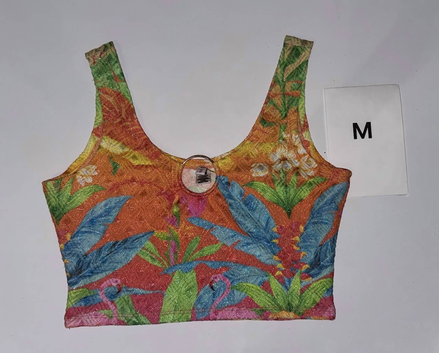 Fit, fabric and functionality. This tank top checks all the boxes. Elevate your summer beach day look with the Luli Fama Palm Breeze Ring Tank Top, a multi-colored sensation. Designed with a sleeveless, scoopneck style, this crop top features an eye-catching O-ring front. Composition: 80% Nylon, 20% Spandex. Closure: Pull on. Care: Hand wash. Note: Prints may vary according to cut.