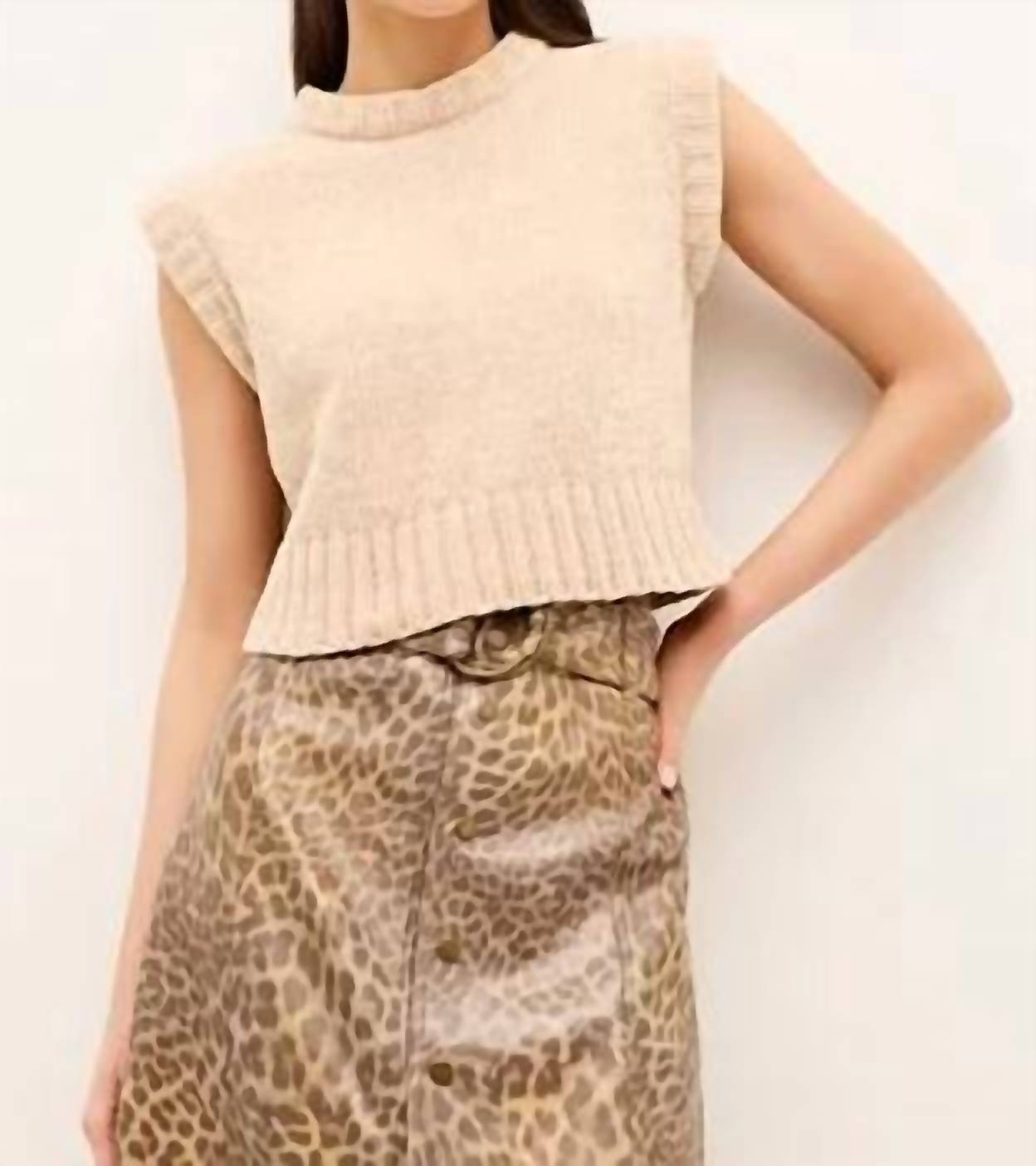 Show a little skin in this cute and casual crop top. Introducing the Presley Cropped Shell Top by Marie Oliver, a chic and versatile addition in the elegant Sugarcookie hue. This sleeveless, mockneck design is crafted from a soft chenille knit, featuring a comfortable slip-on silhouette that pairs effortlessly with high-waisted bottoms. Made entirely of 100% polyester, it offers a touch of luxury with its unlined texture. Care for this minimalist piece with hand washing in cold water and laying flat to dry, or opt for a cool iron or mild dry cleaning.