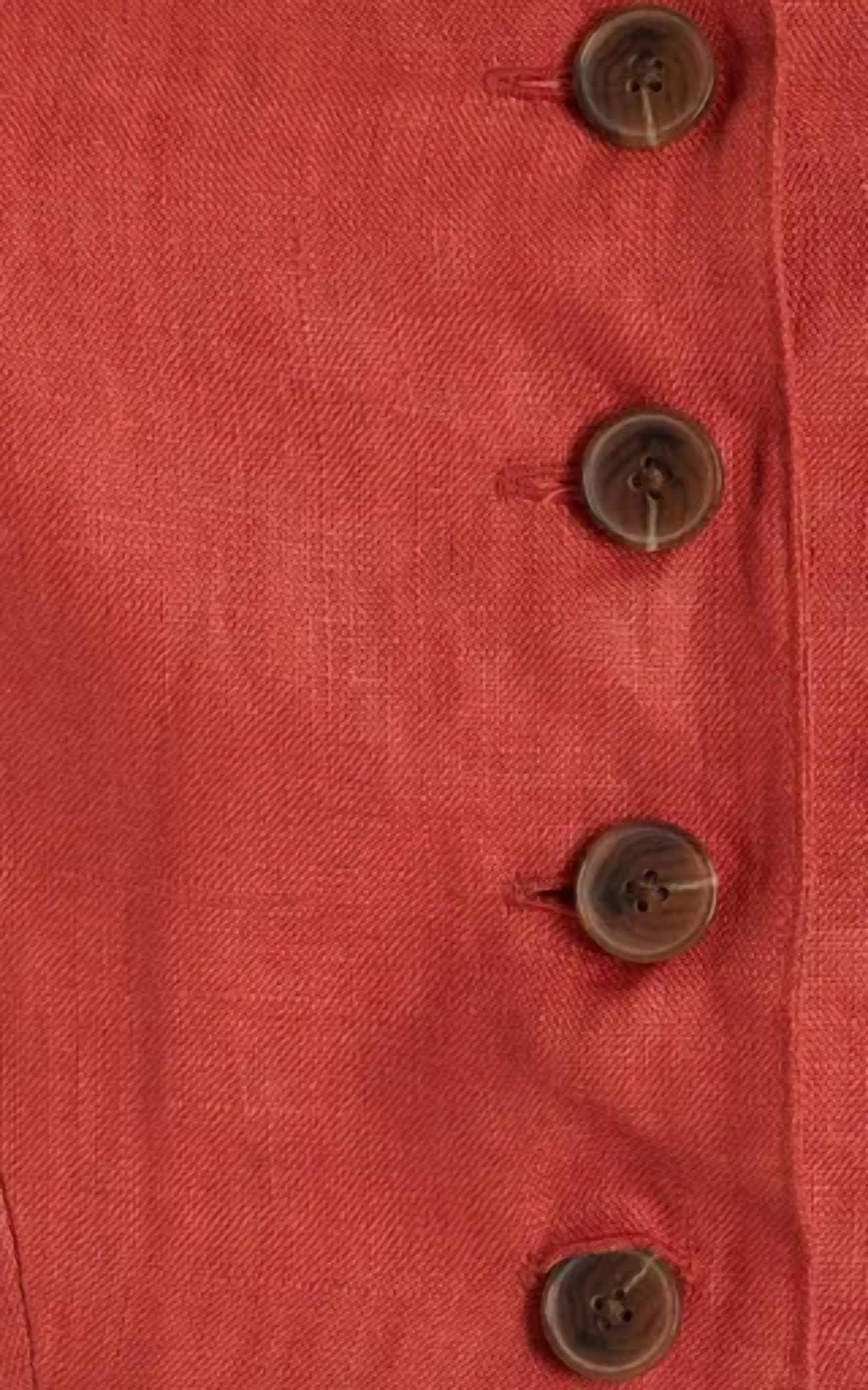 Show a little skin in this cute and casual crop top. Introducing the Apron Crop Top by Matthew Bruch, a chic addition to your wardrobe in terracotta linen. This women's top features a square neckline with short sleeves, exuding a relaxed yet sophisticated look perfect for summer. Composition: Linen. Closure: Button closure. Care: Hand wash.