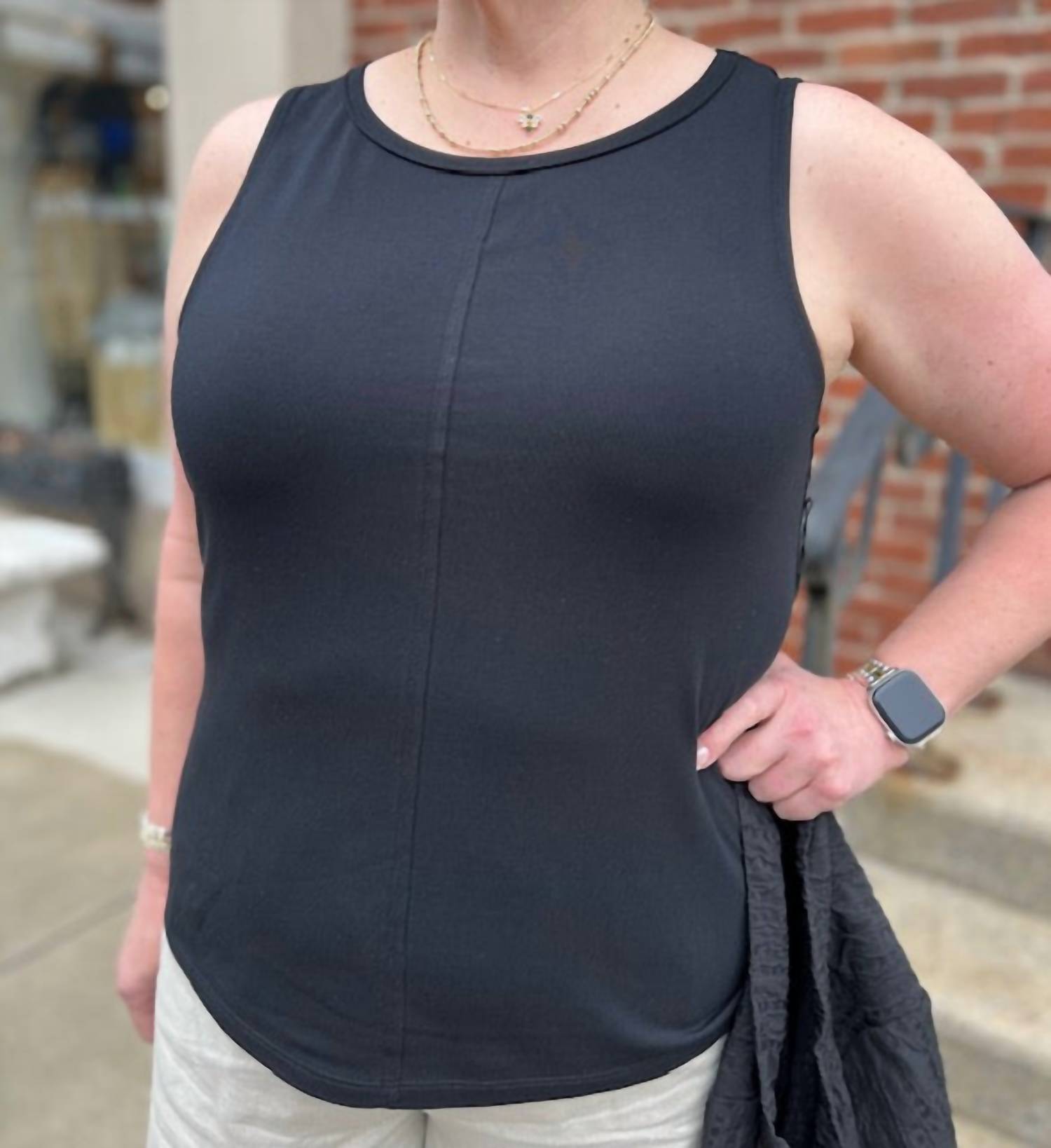 Fit, fabric and functionality. This tank top checks all the boxes. The Olivia by Habitat Essential Knit City Tank Top is impeccably crafted for timeless appeal and comfort. This sleeveless tank, in a rich black hue, features a luxurious blend of Pima Cotton, Modal, and Spandex ensuring softness and superb shape retention. The pull-on design highlights a classic scooped neck with bra-friendly straps, perfect for any minimalist wardrobe. Care is simple with machine wash cold and tumble dry low instructions, making it the ideal piece for effortless yet stylish summer or holiday party outfits.