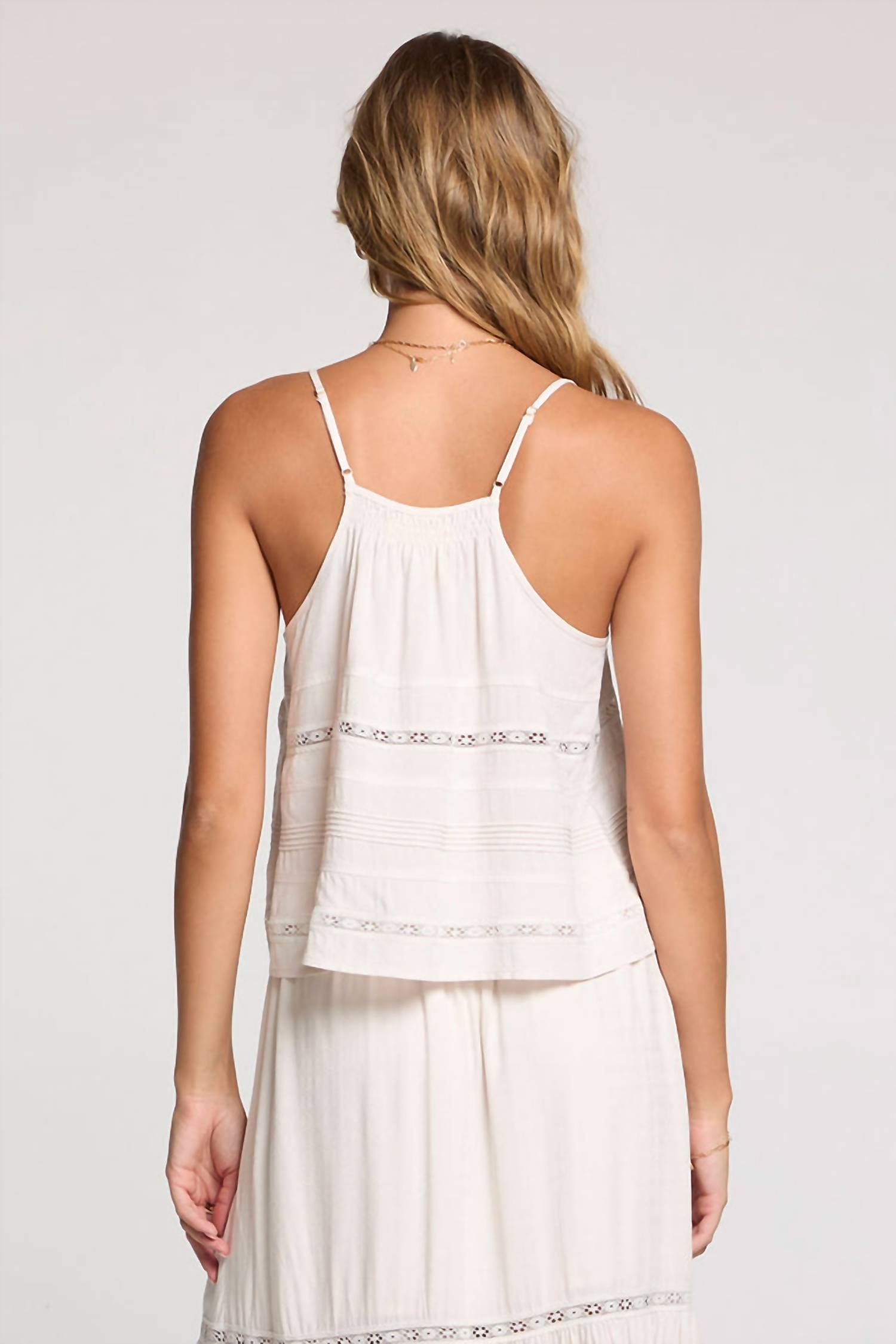 Fit, fabric and functionality. This tank top checks all the boxes. The Kamryn Tank by Saltwater Luxe is designed for a chic and effortless style, perfect for your summer wardrobe. Featuring spaghetti straps and a flattering flowy black body with petite lace detailing, this piece is made from 100% Rayon and boasts a Boho Chic trend. Closure type: Button closure. Model is 5'9" and wearing a size small, and this stylish tank is imported.